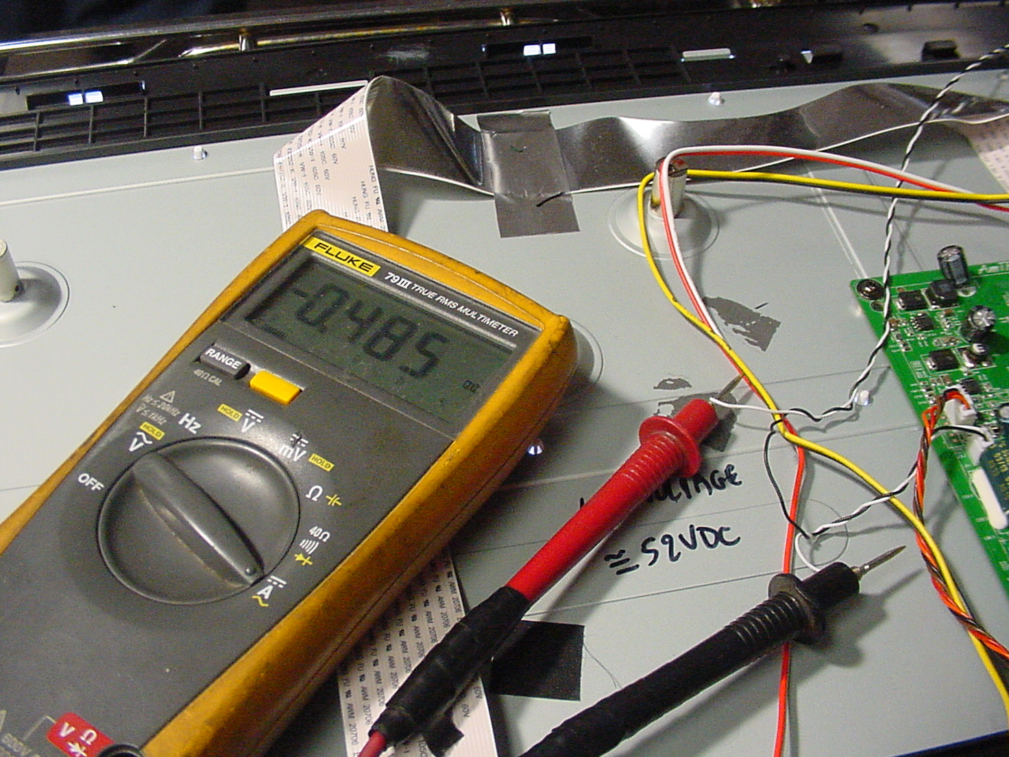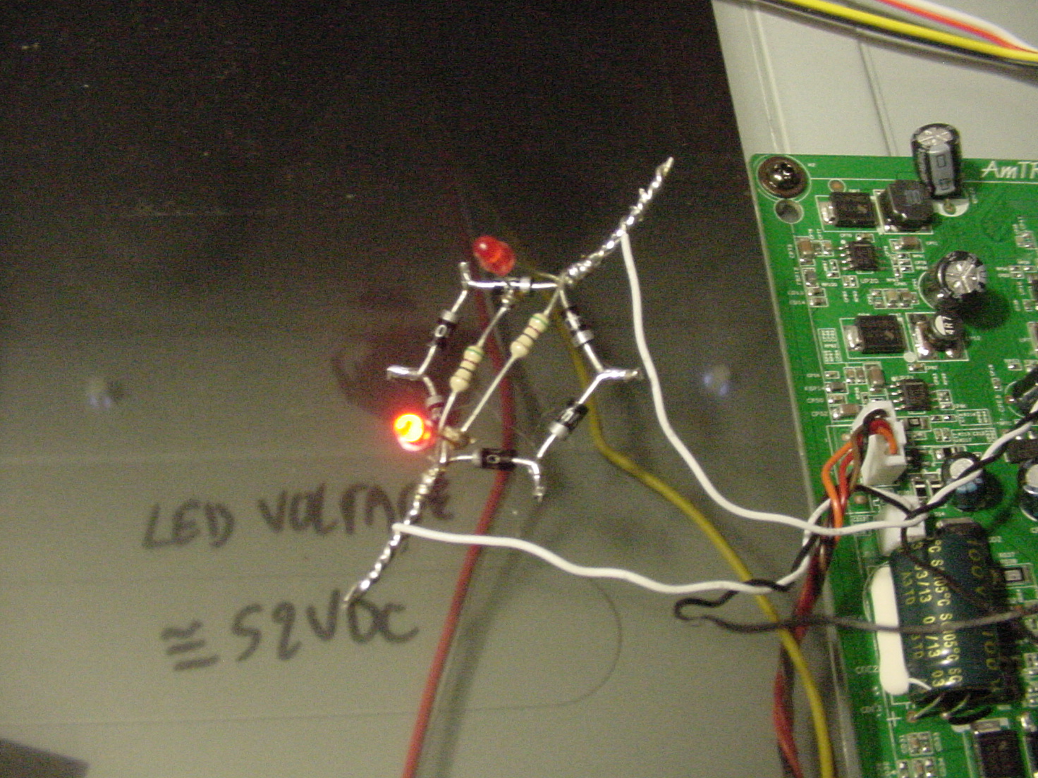 I just build this for troubleshooting to find out if one or more LEDs of the LED string is open. It is connected in line with the LED string wire without having to find the polarity of the output first, you can use DCA meter to test too but the meter may not show fast enough before the circuit goes into protection shutdown.