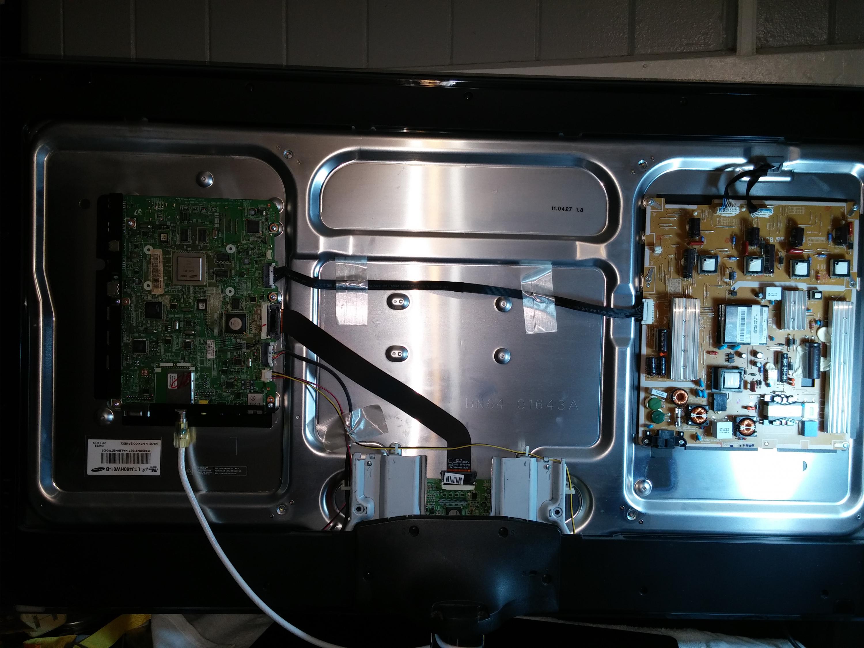 I am trying to determine the cause of what is causing the lines and ghosting on my Samsung tv. The lines are always present. Ghosting can be seen 1% of the time. The line and ghosts only appear on the top 1/3 of the screen. I have not taken the tv apart yet so I only have pictures of the screen.