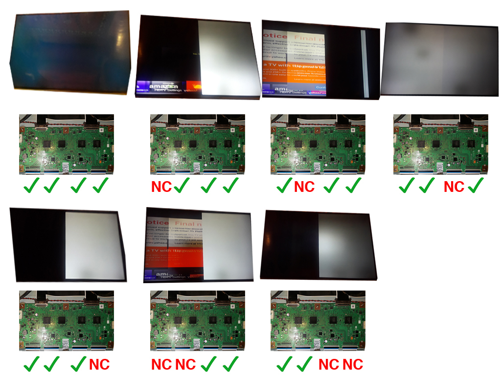 He woke up recently to a bunch of white bars going down the right side of the screen. From what I'd seen in these places, I figured the T-con board has gone out or has a bad connection. I took the back off and gently poked at the socketed ribbons and sure enough, got the image back. It was mainly the far left ribbon, and it would snap back to stripes if I let off the pressure. I figured, "Great... I can just reflow the connector and clean things.". I wiped it with some flux and hit it with hot air (actual rework station), but was probably too much of a wimp on the heat, so it looked great for an hour while I tested it, then ten minutes after he sat down it snapped back to lines. He keeps the volume jacked up to something ridiculous, so maybe it needed a little shake.
