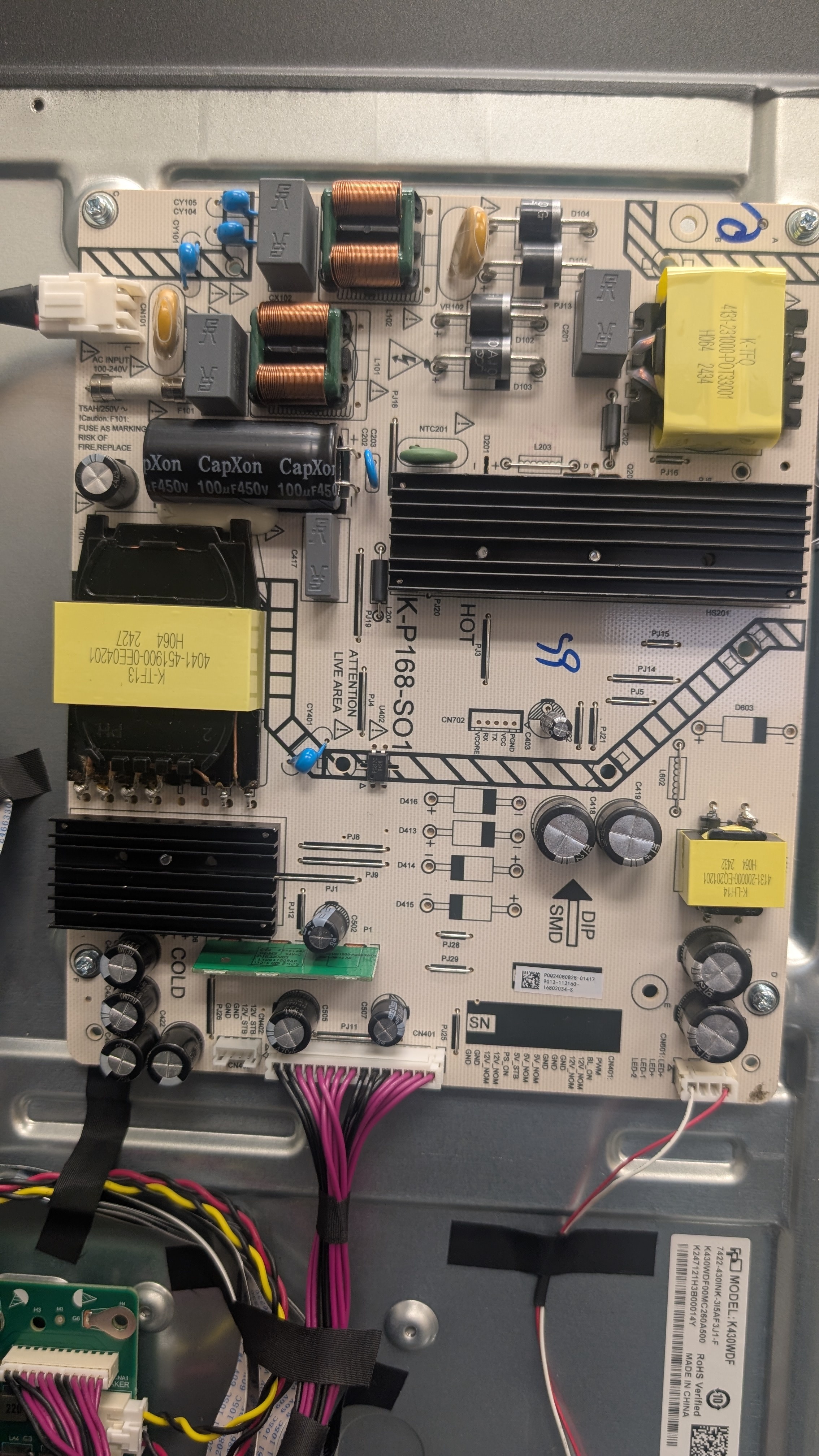 Try this test, meter in vdc mode, neg. probe on chassis ground pos. on ps-on>check voltage in standby, now leaving probes where they are try powering on tv with power button on tv while keeping an eye on the meter, does voltage change at all even momentarily? Next do the same for the bl-on, then pwm.Last edited by nomoresonys; 10-02-2025, 01:33 AM.Comment