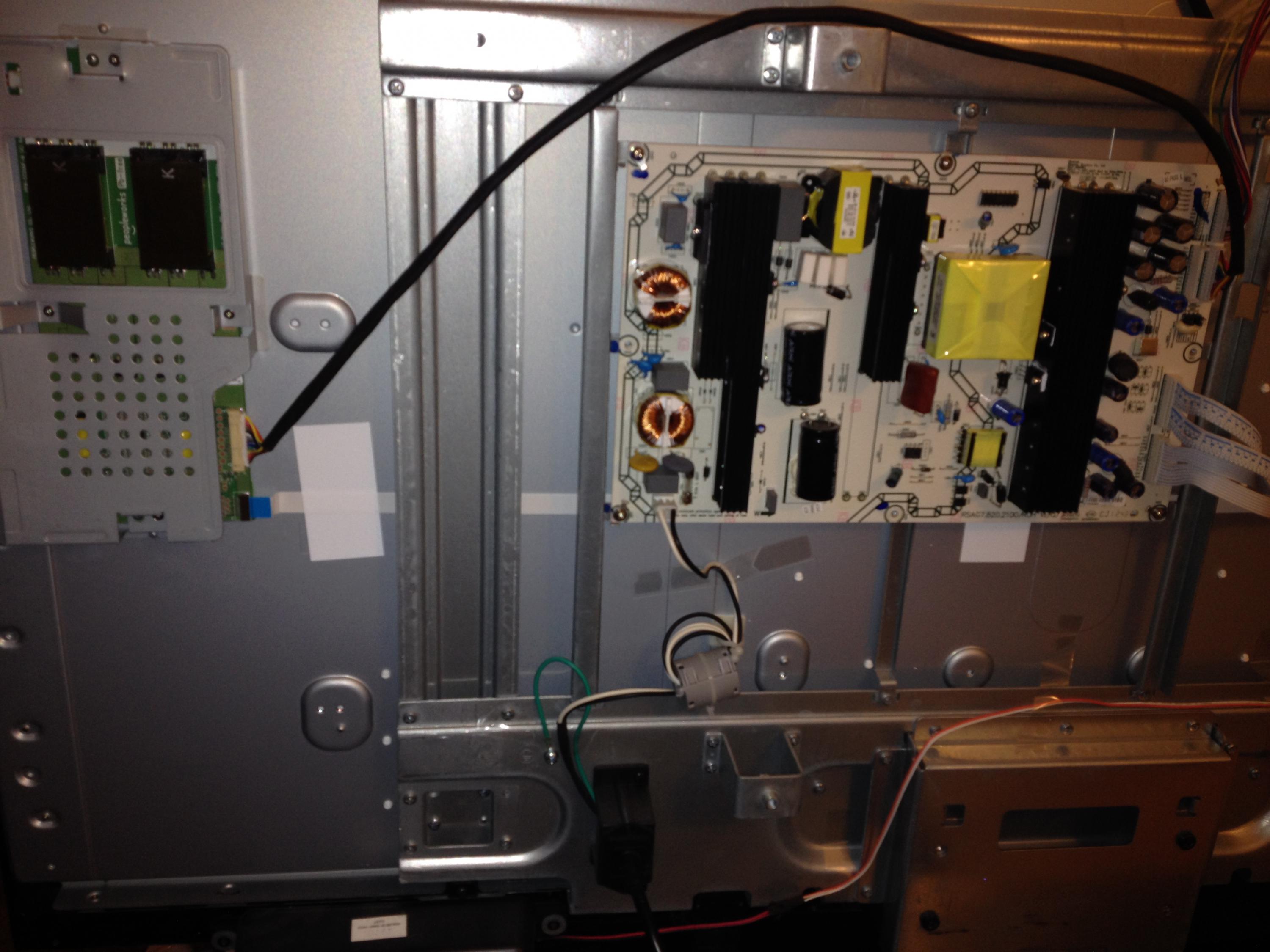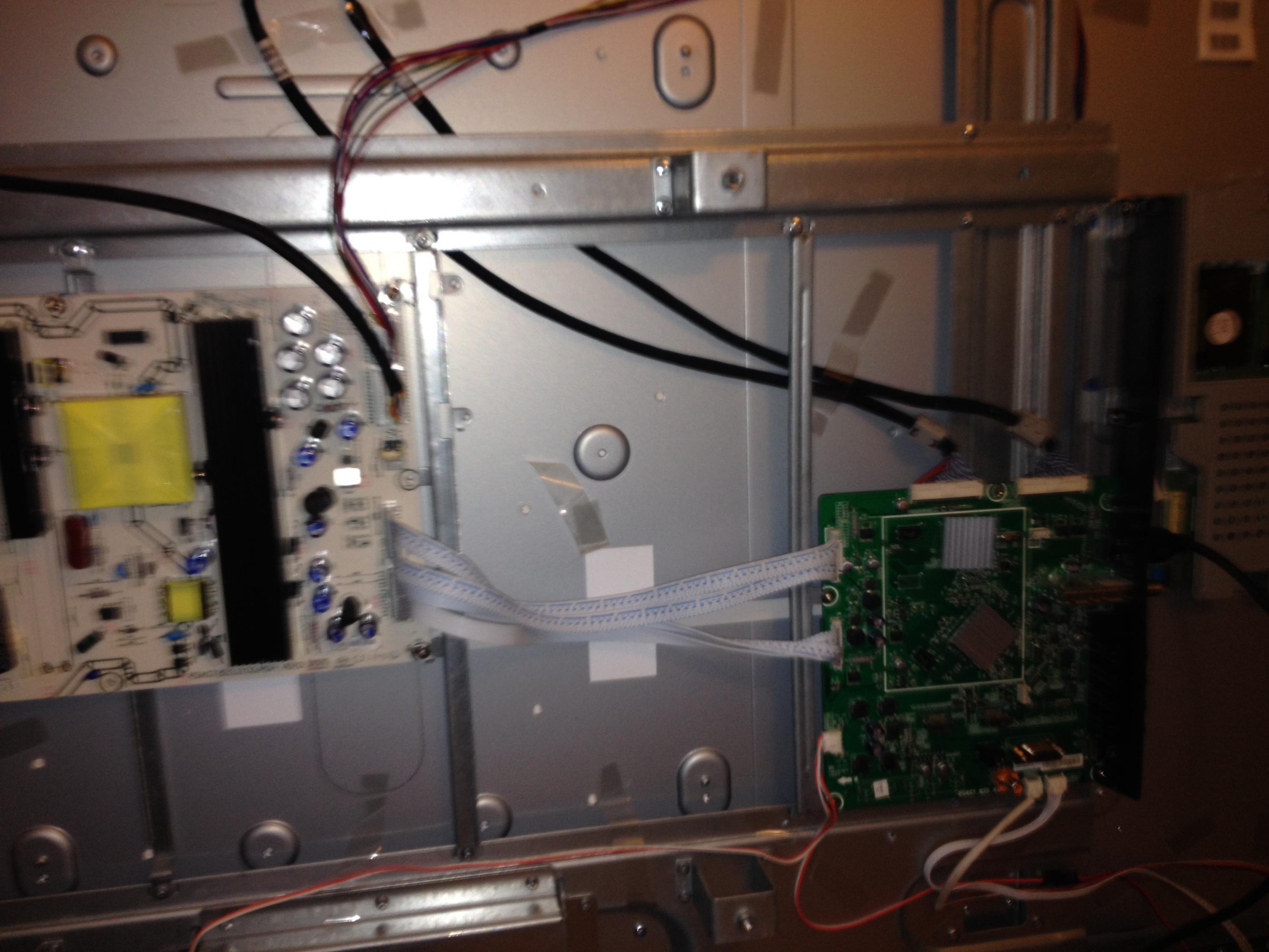 Hello everyone, thank you for taking the time to read my problem and help me out any way that you can in advance. My problem is that i have an Insignia LCD that had a problem of when you plug it in to the wall, it powers up and the back lights flash one time then the red light on the front of the set goes solid and i'm assuming its in either a protection mode or stand by mode. Anyhow i remove the back cover and i started to trouble shoot, the only thing i have found out so far is that if you unplug the back light inverters the tv comes on just fine and plays audio and puts a picture on the screen(although not visible without back light) so i proceeded to try to narrow it down to one back light. I kept the master plugged in and disconnected the Slave and viola! it came on and functioned "correctly" for the most part, it came on then the back light shut off so i had to turn it off and on a few times and i was able to watch it for the rest of the night. Now with the same setup, i went to turn it on this evening and it came on normally but then the back light shut off again(only master still plugged in) but i noticed that if i changed inputs and put it on the blue screen where there wasn't any input detected that it would come to life, almost like you twisted an old fluorescent light bulb to get it to come on. Anyways, i ordered a replacement set of inverters off ebay that are guaranteed to work and they did the same thing. I'm really hoping that this is just a bad resistor or bad cap, but i see nothing visible on the PSU other than a slightly discolored area under the main transformer(?), any help would be greatly appreciated, i know it's not the greastest TV but on a low budget its really all ive got. Thanks again!