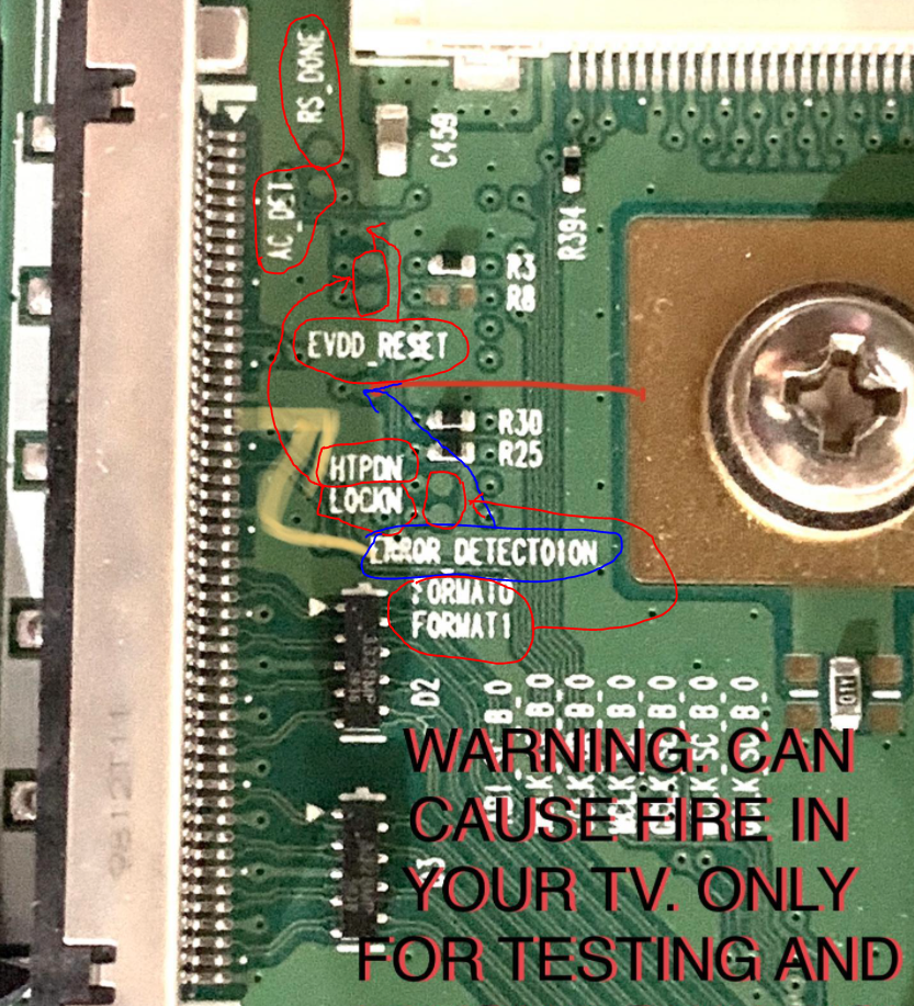 On different LG T-CONs (OLEDs), the locations of the control points are different. You need to read the labels to find out where they are, and not just take a sample from one T-CON. Here is another example of where ERROR DETECTION is located!
