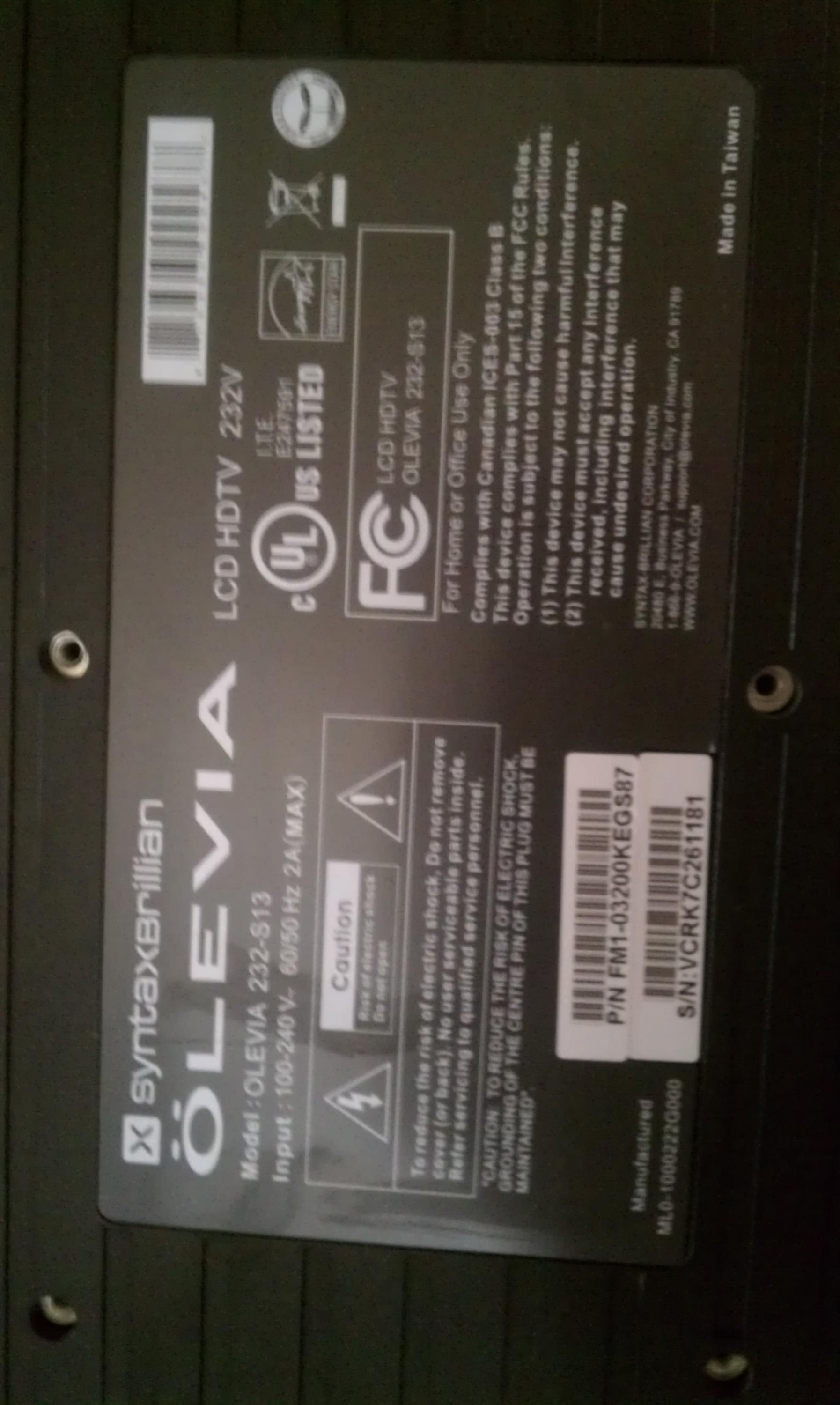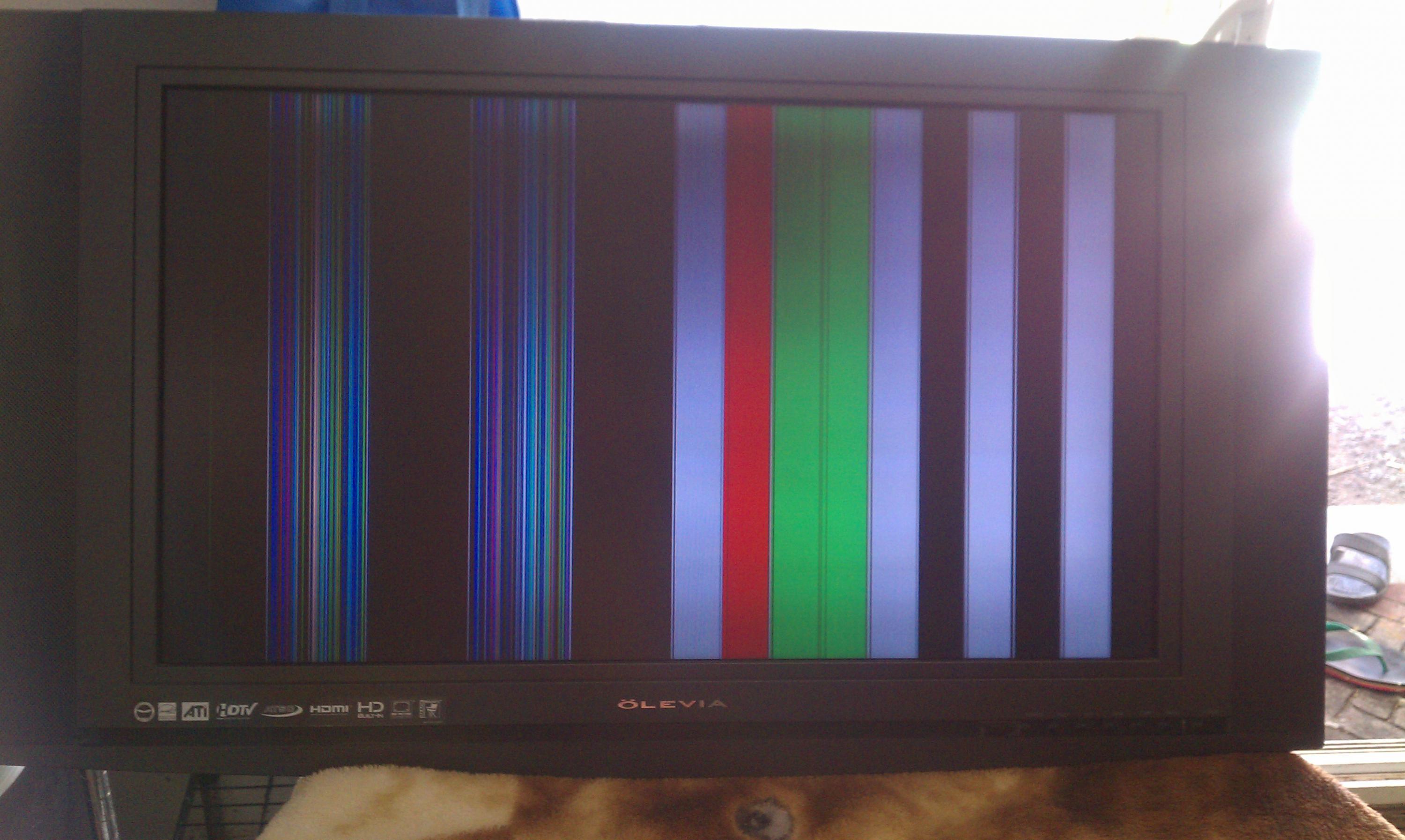 Re: OLEVIA 232-S13 black screen slowly fades to vertical colored bars