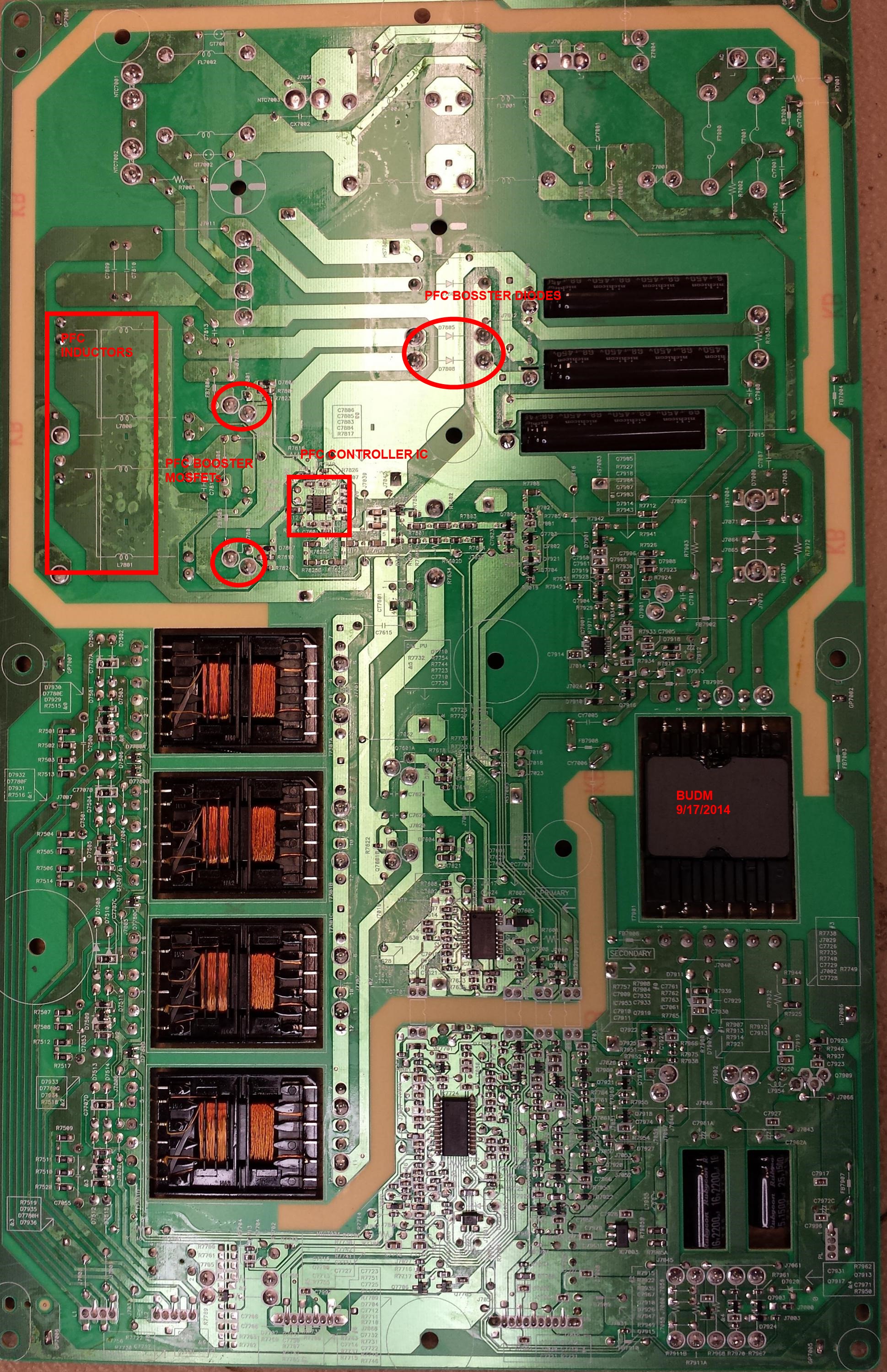 Right now we are interested in the PFC Controller IC that needs to be checked out as I redlined in the picture in post 14.