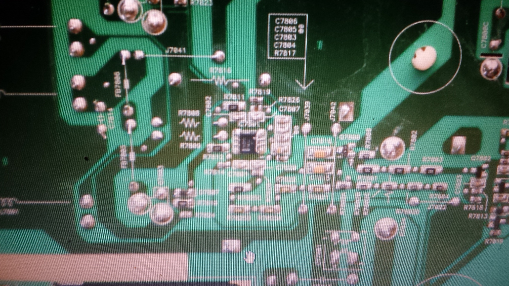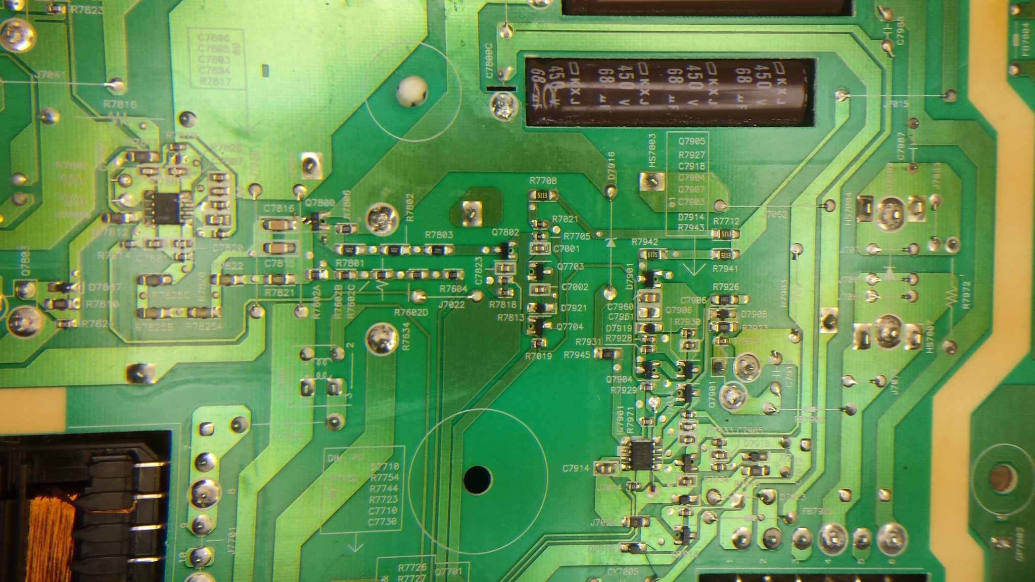 Check the protection resistor R7814 which is connected the VCC pin 8 of the PFC IC to make sure is not open, it should be <10 Ohms.