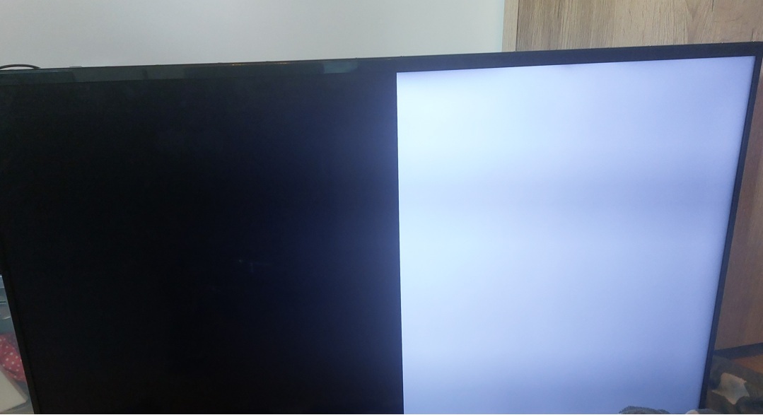 When I disconnect one of the T-con cables, half of the screen turns white.