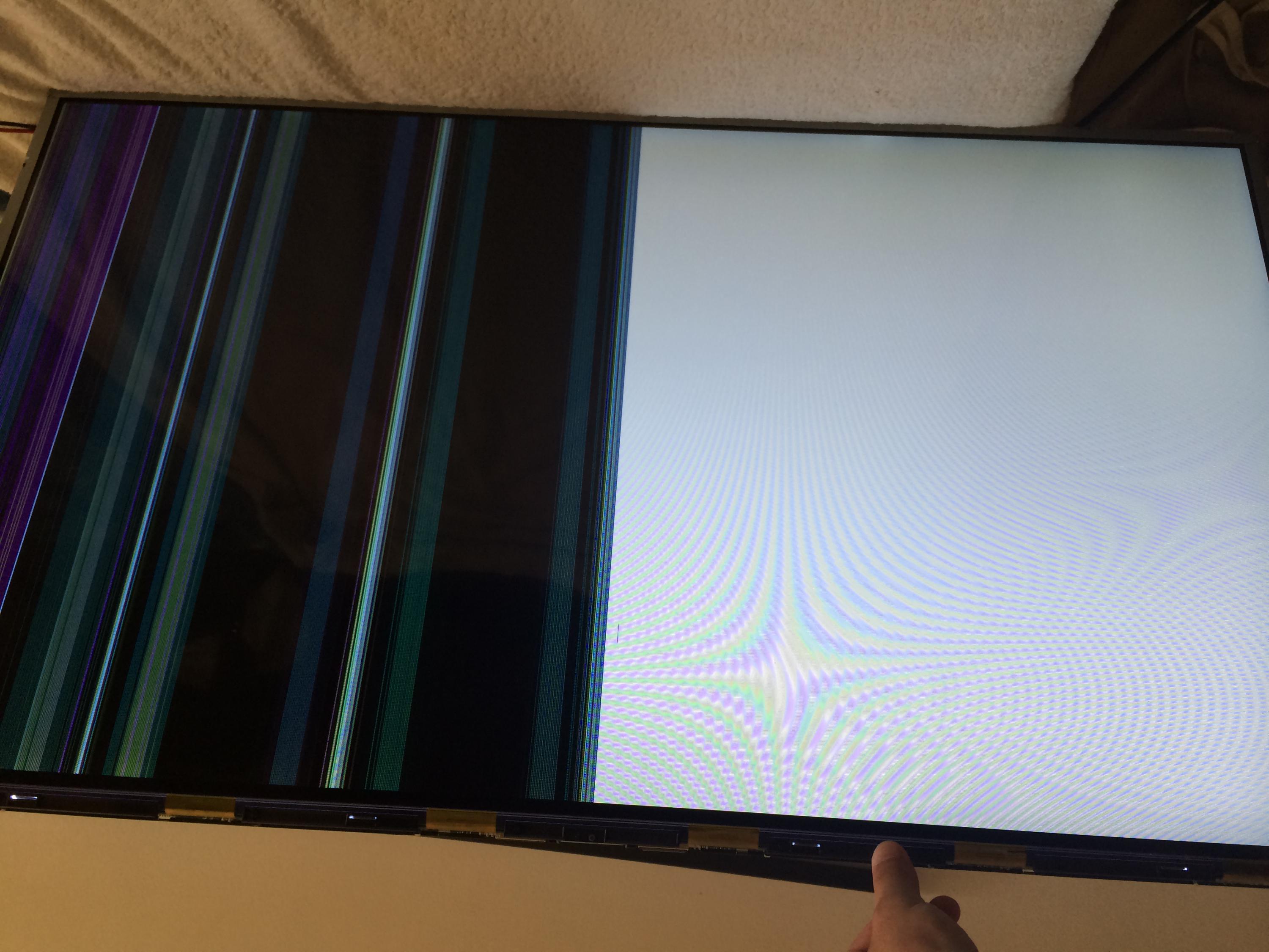 as a few drops of water dropped on the top of the screen and fell all the way to the bottom , the TV worked for a little while and then stopped.
