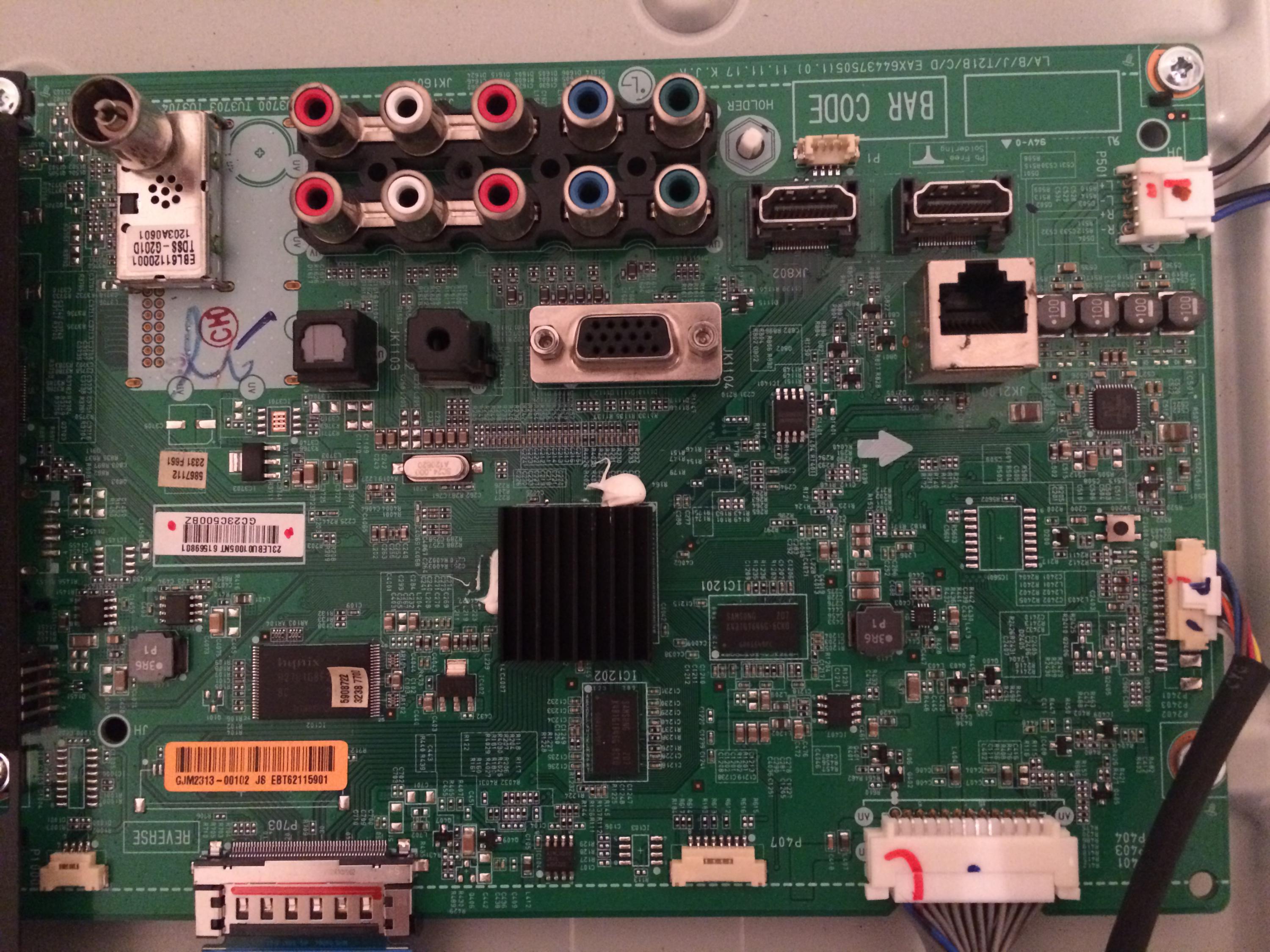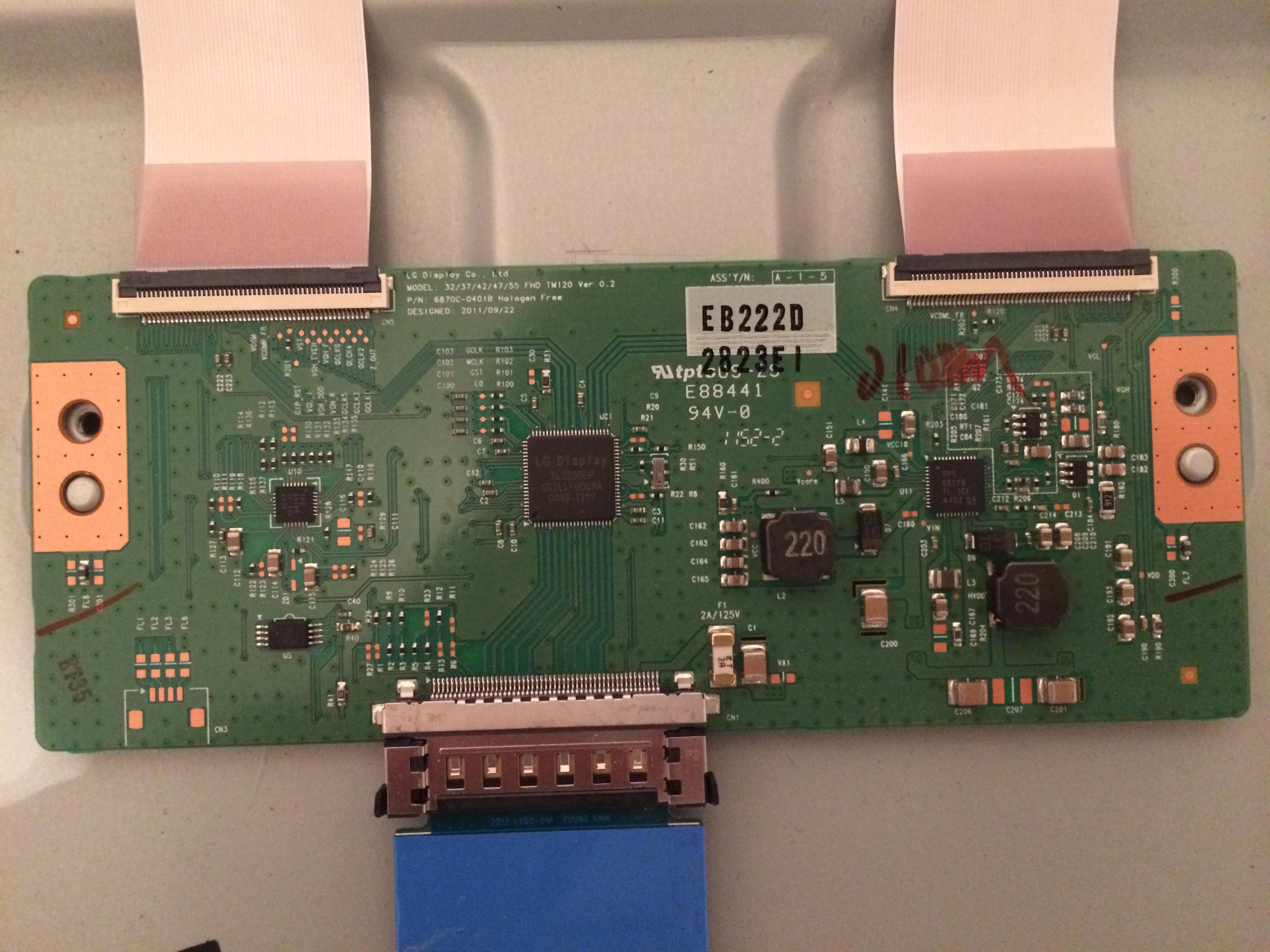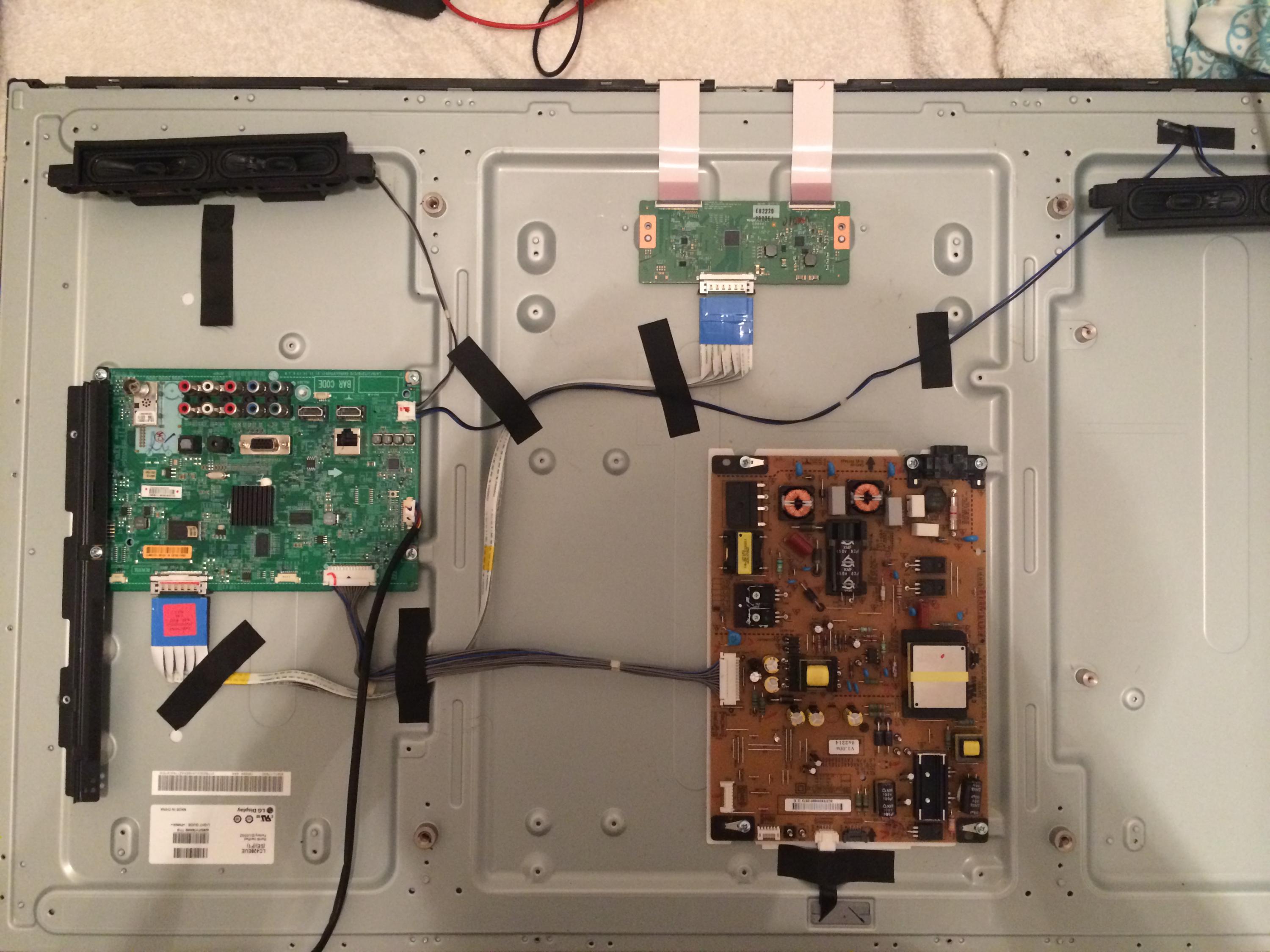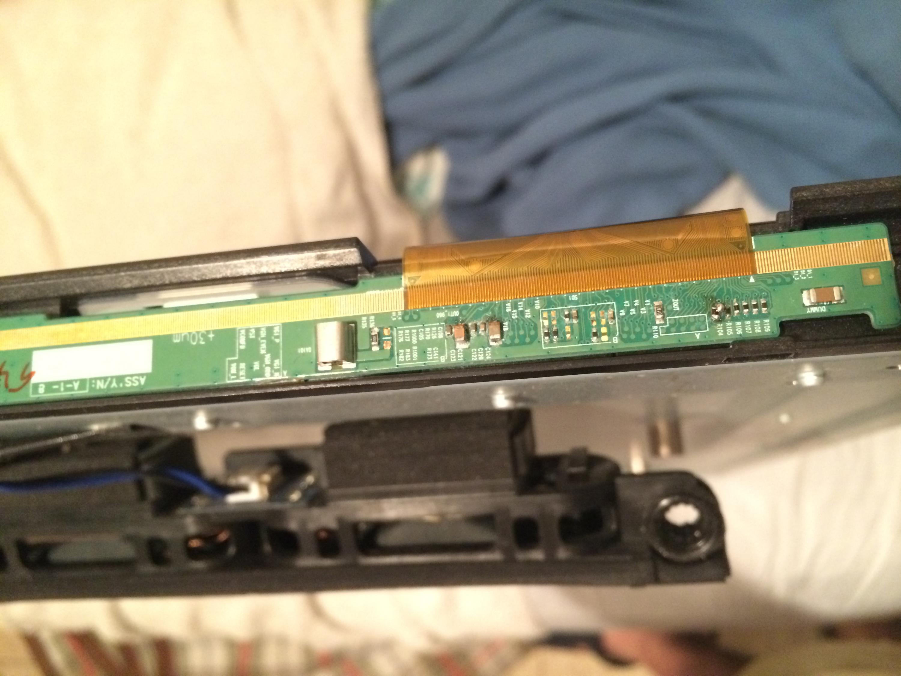 the only place i found water damage was at the bottom on the left part (that i"m not sure how its called) that is connected with a ribbon to the T-con and with 3 ribbons to the LED screen (there are 2 of the one is called left and one is called right but they seem identical only assembled the other way around)