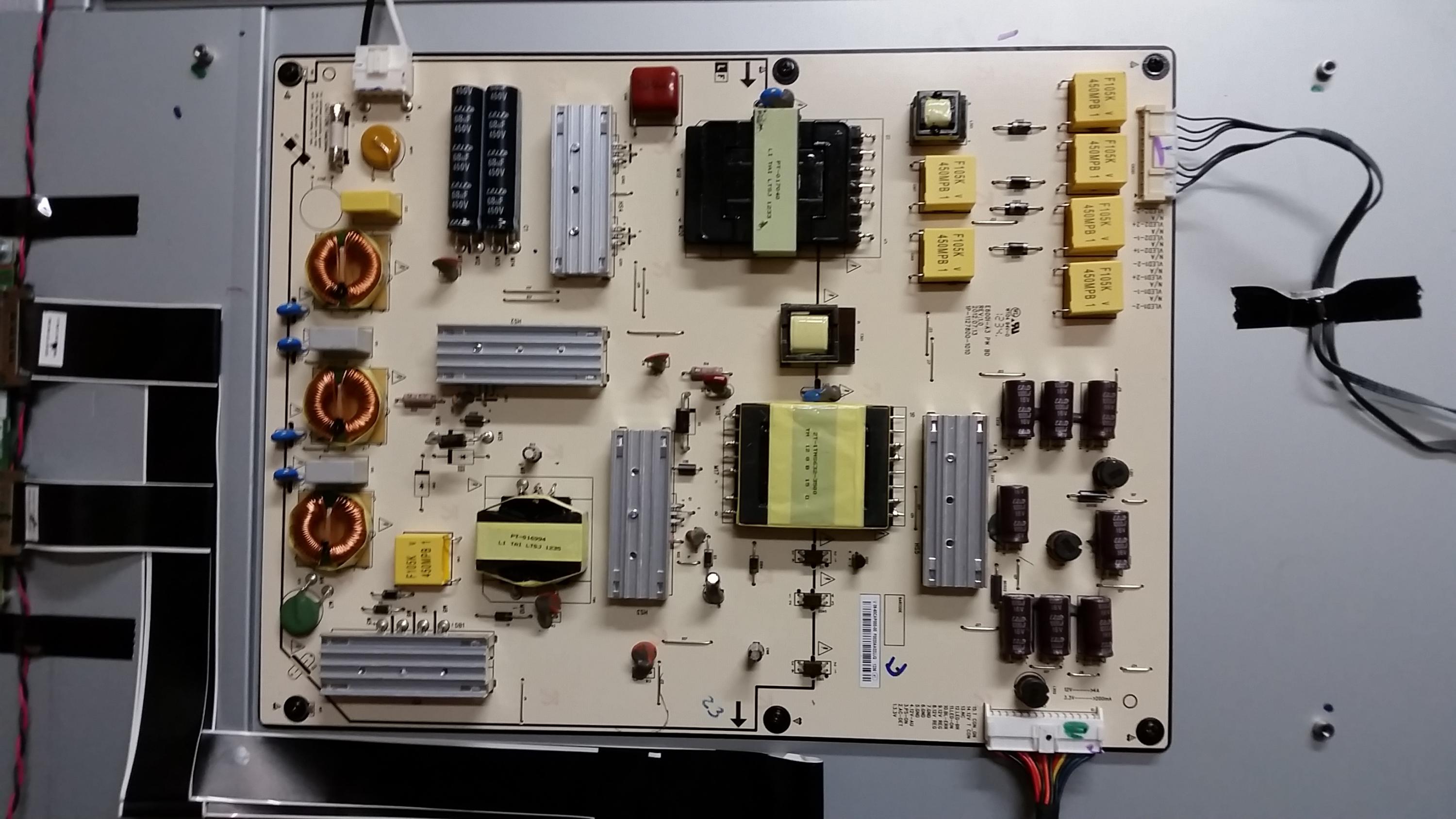 Yesterday I replaced the power supply board (p/n: 09-60CAP000-00) with a refurbished OEM board, and the set powered up and displayed video, albeit the HDM1 input was still not working (as expected).