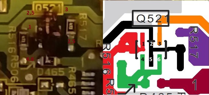 Tomorrow I will solder Q521 in and turn her on.