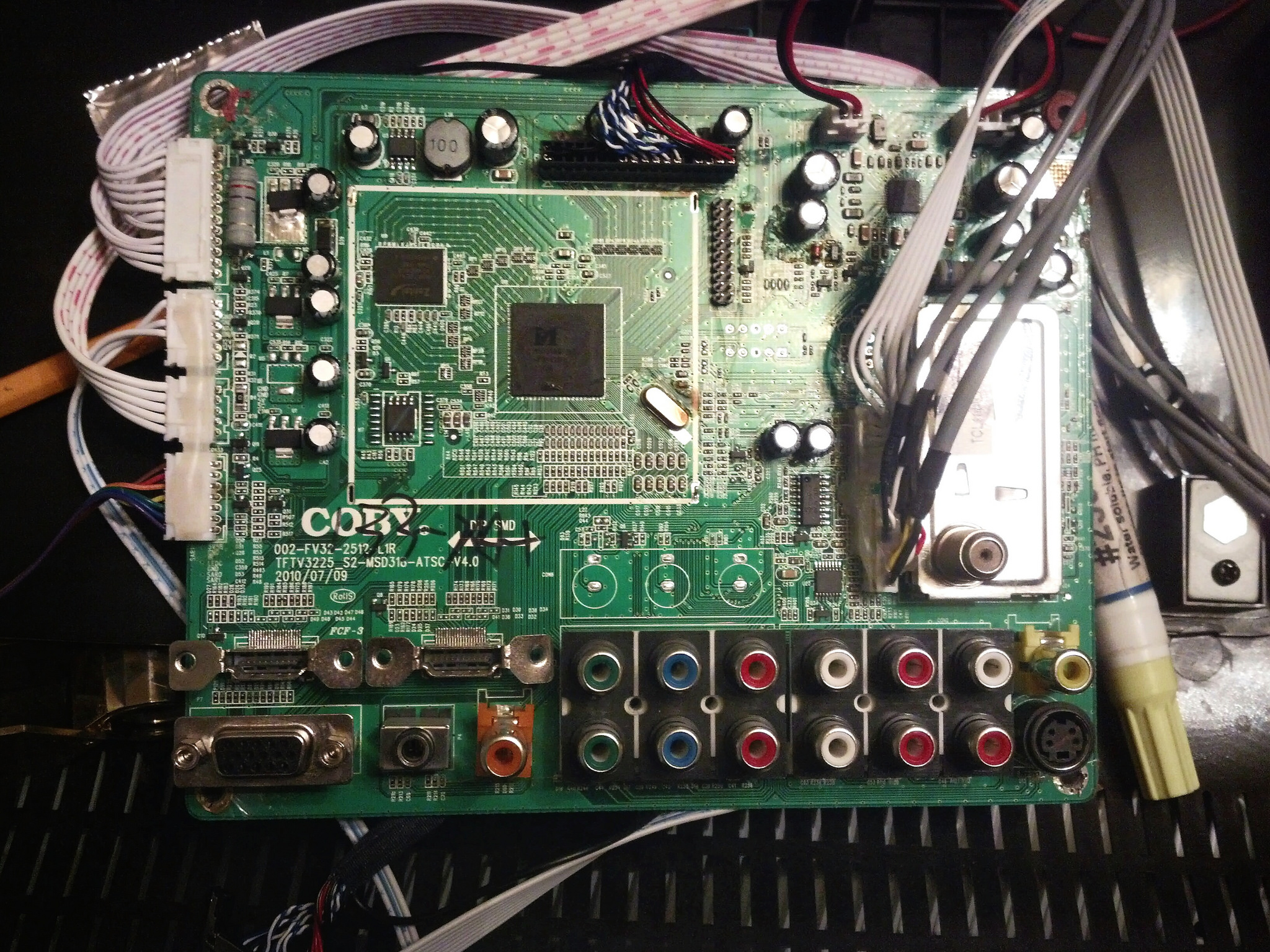 I picked this set up for free a month or so ago, finally had a little time to test it out and found one of the back light transformer open circut. Bought a new (used) inverter off ebay and I still get no response from power button. The main is turning on the power supply when plugged in and all voltages are correct, It is not sending the blon signal out. I verifed the button board is good and I can see the button pulses on the main board. At this point Im sure the remaining fault lies in the main. I get spot on voltages out of the two 1.8v regulators and the 3.3v reg. At this point Im thinking the eeprom is corrupt. I was going to use the resistor from vcc to sda but when I pulled the datasheet it doesn't have an sda pin. Im fairly sure Ive got the right chip, there are only 2 8 pin ics on the main a-