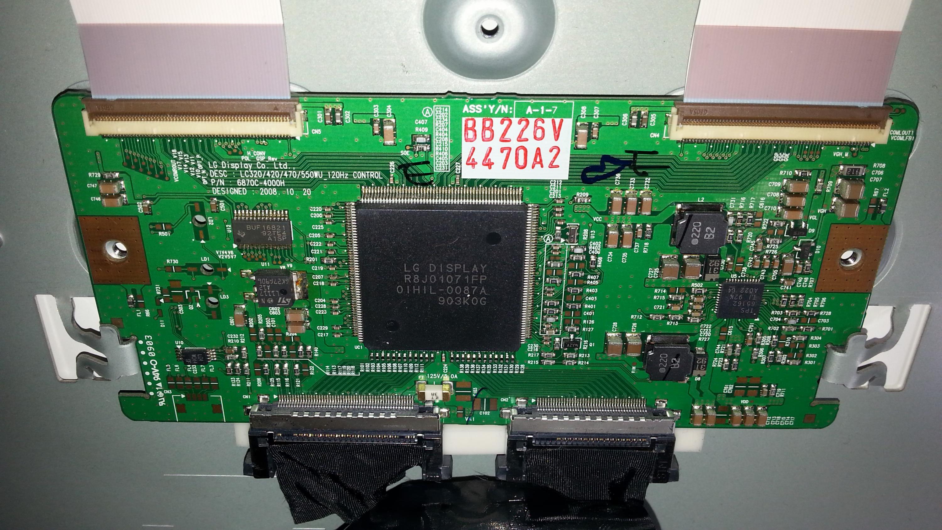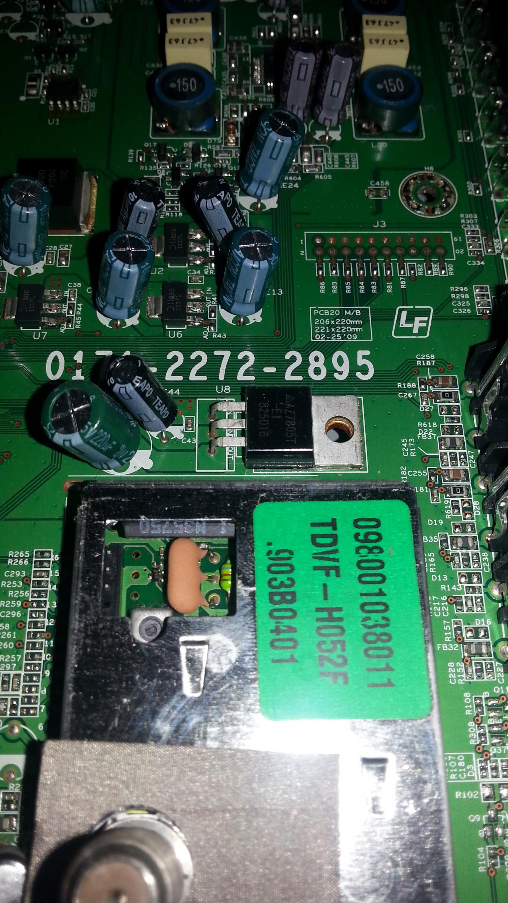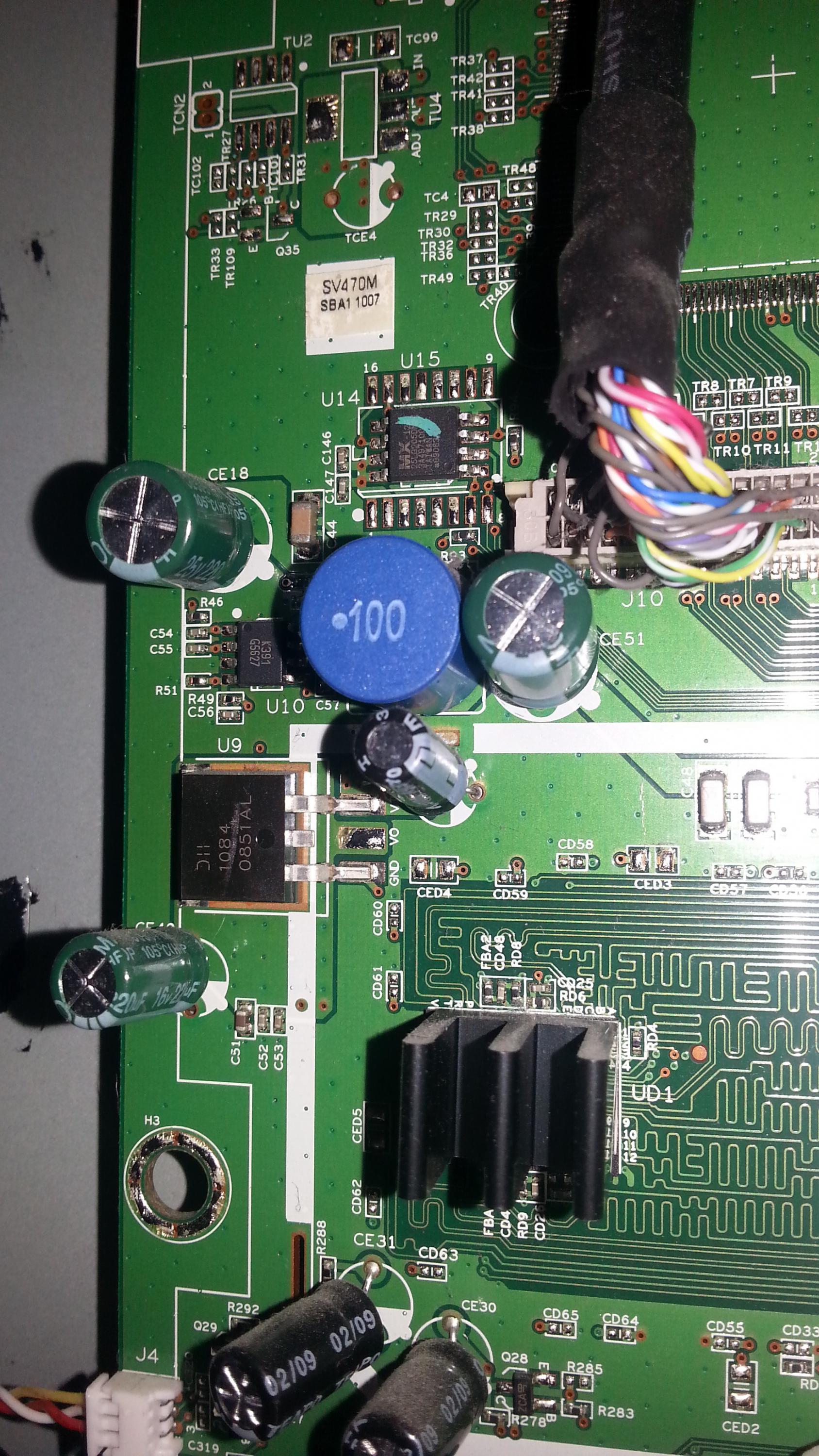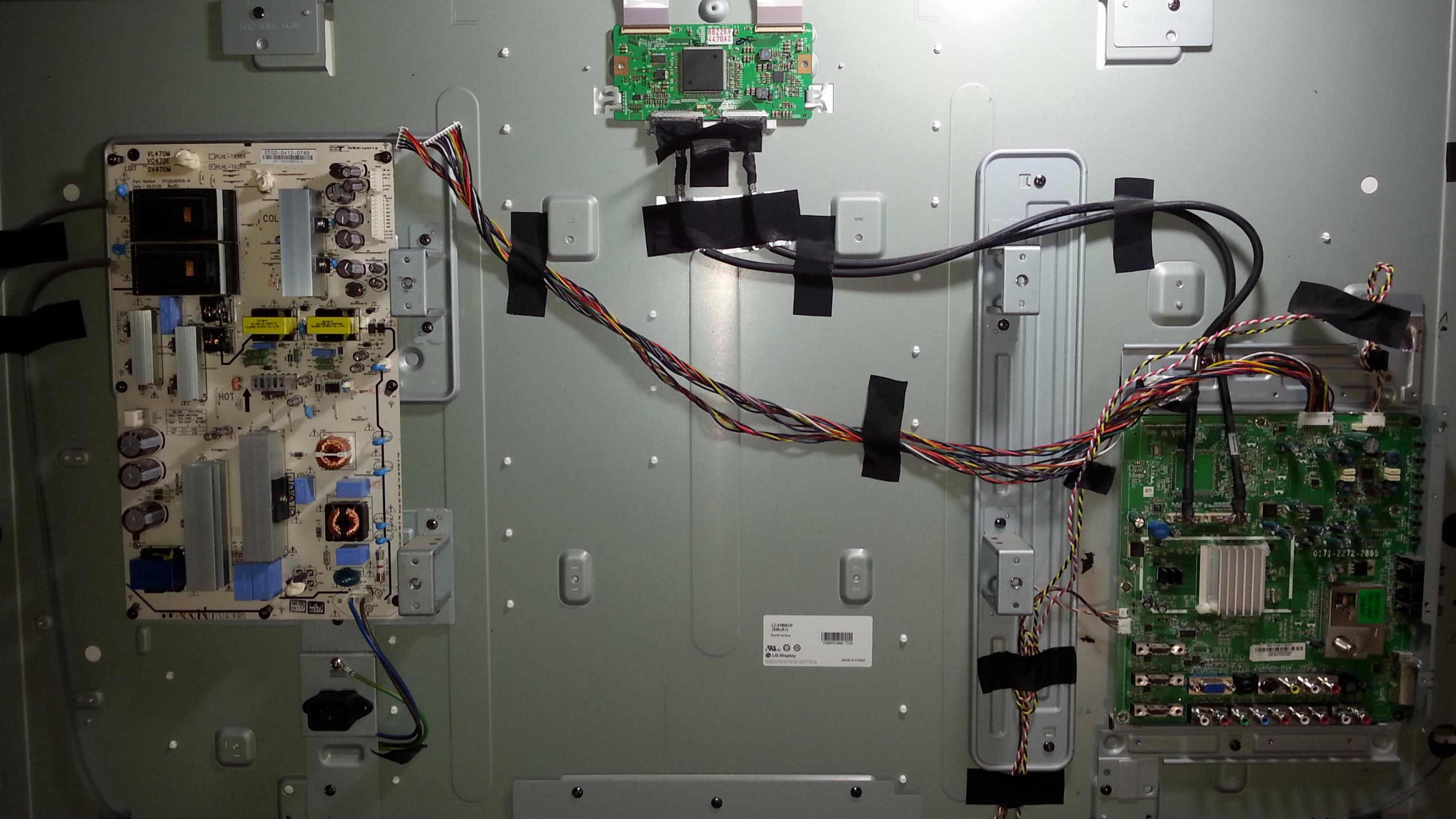Hello all. I have a Vizio SV420M that's giving me strange symptoms. When I plug it in, the power light immediately turns on, completely bypassing standby. There is no picture or backlight and it doesn't seem to react to any of the buttons. The only way I can get the white light to turn off is by unplugging it. I'm not really sure where to start on troubleshooting this thing since the problem seems odd. Any help would be appreciated. I've attached photos of the boards.