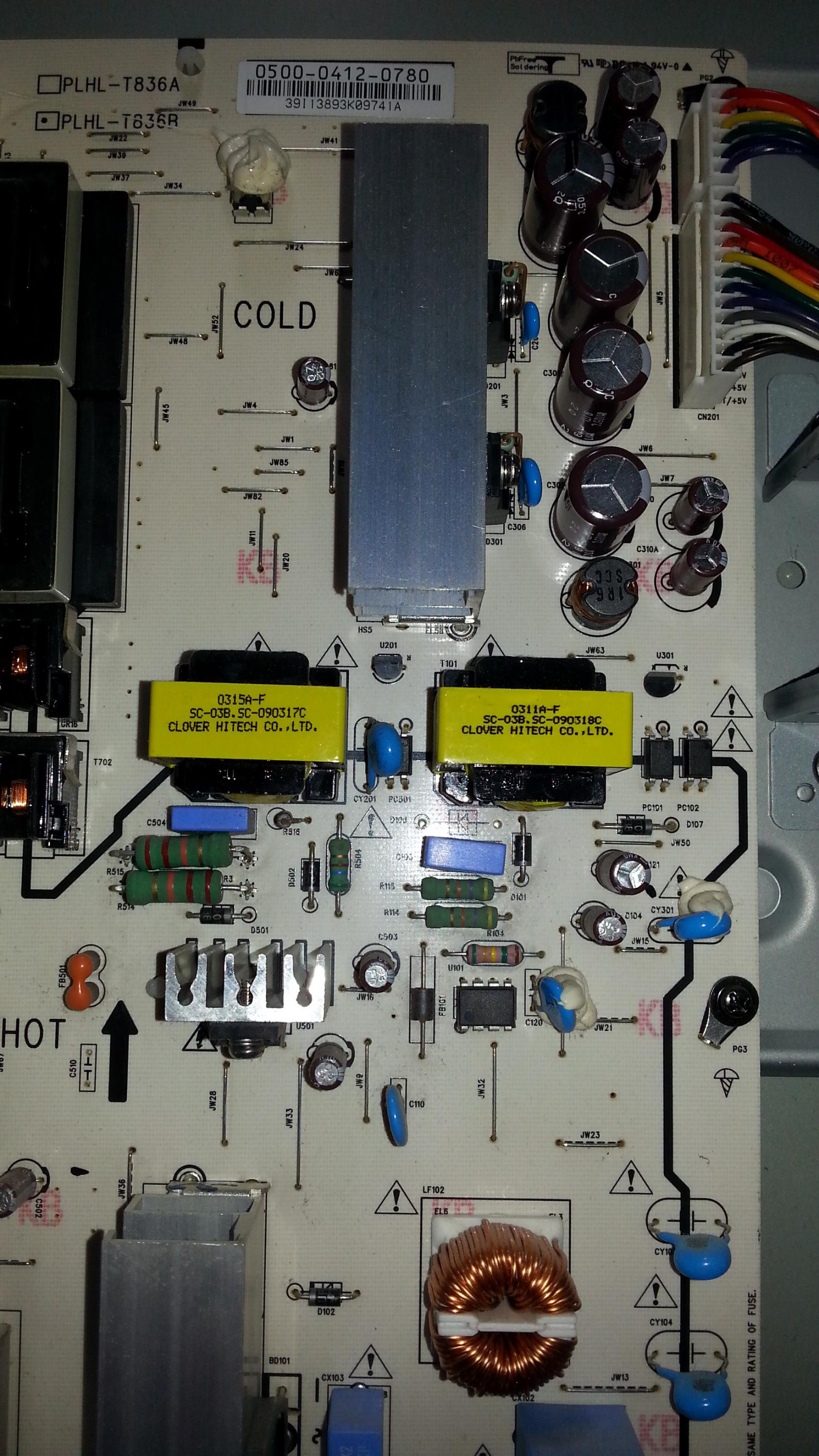 by fharris1977Hi. I got a Vizio with no power or standby, and won't turn on with remote or button. I checked the voltages on the connector and all read 0.00V or nearly 0(0.050 ON/OFF pin). None of the pins are labeled STB for standby although I do see some 5V pins. Other than the obvious standby led, which isn't coming on, is there a way to check for standby voltage on this PS. I'm trying to see if my problem is the PS or mainboard. Some Vizios I have fixed with no standby led me to think it was the PS but it turned out being the mainboard. Any experience with this set would be greatly appreciated.1 Photo