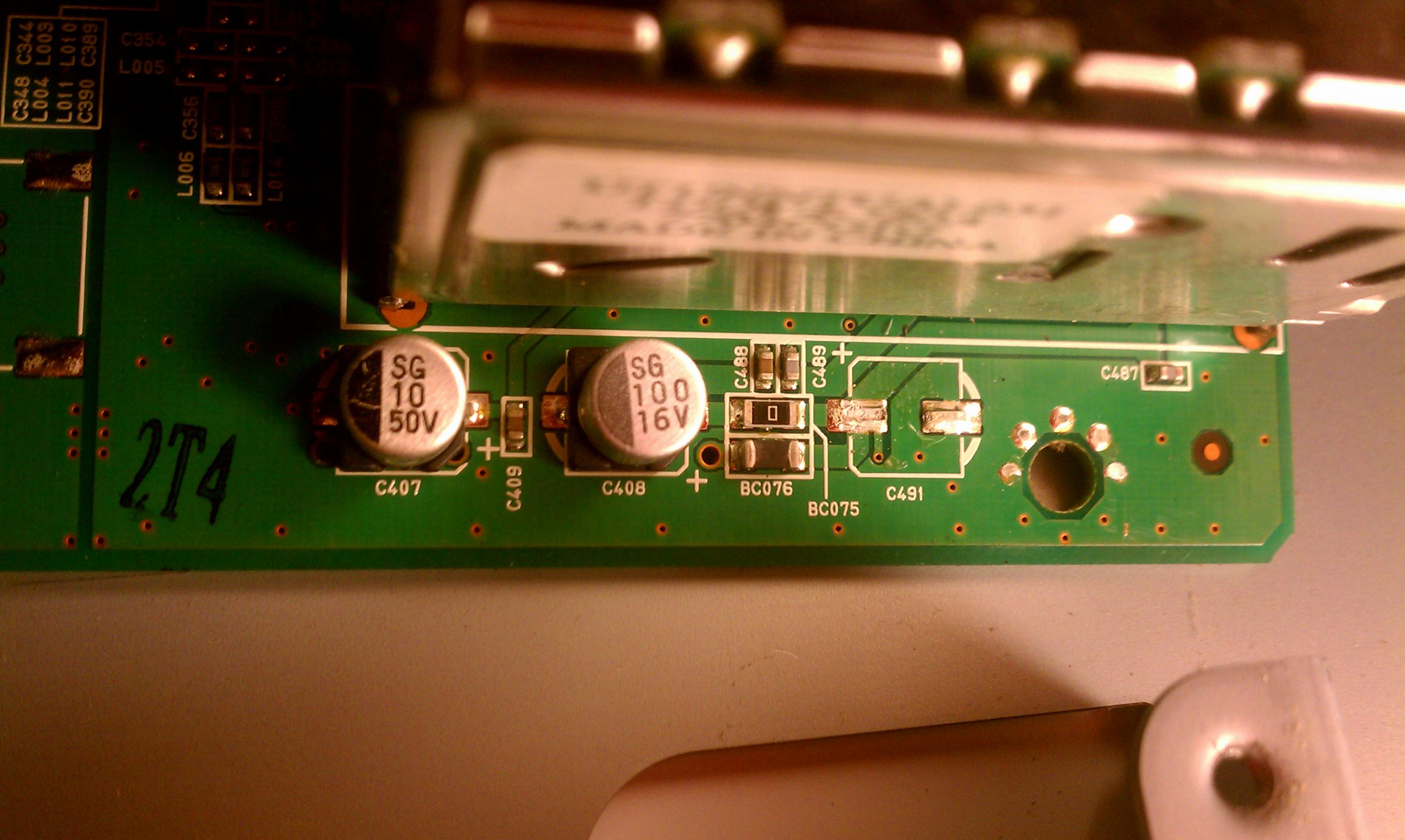 i was trying to get the metal shield off the Main board when it snagged one of the capacitors and tore it off.