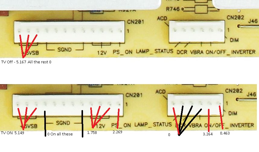 I'm new to troubleshooting tv's. Read through some threads on the site and went through testing voltage regulators and came up with these voltages: