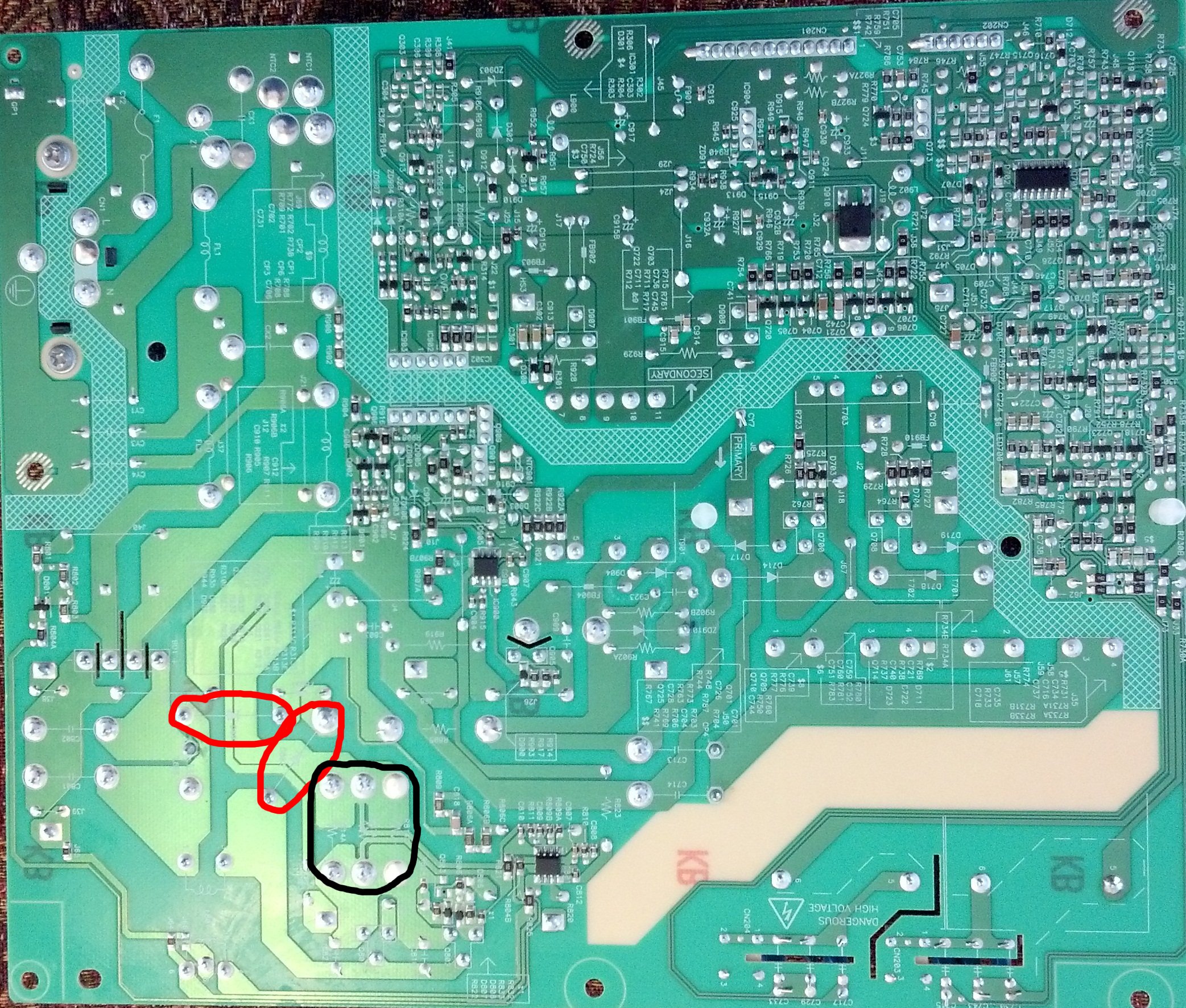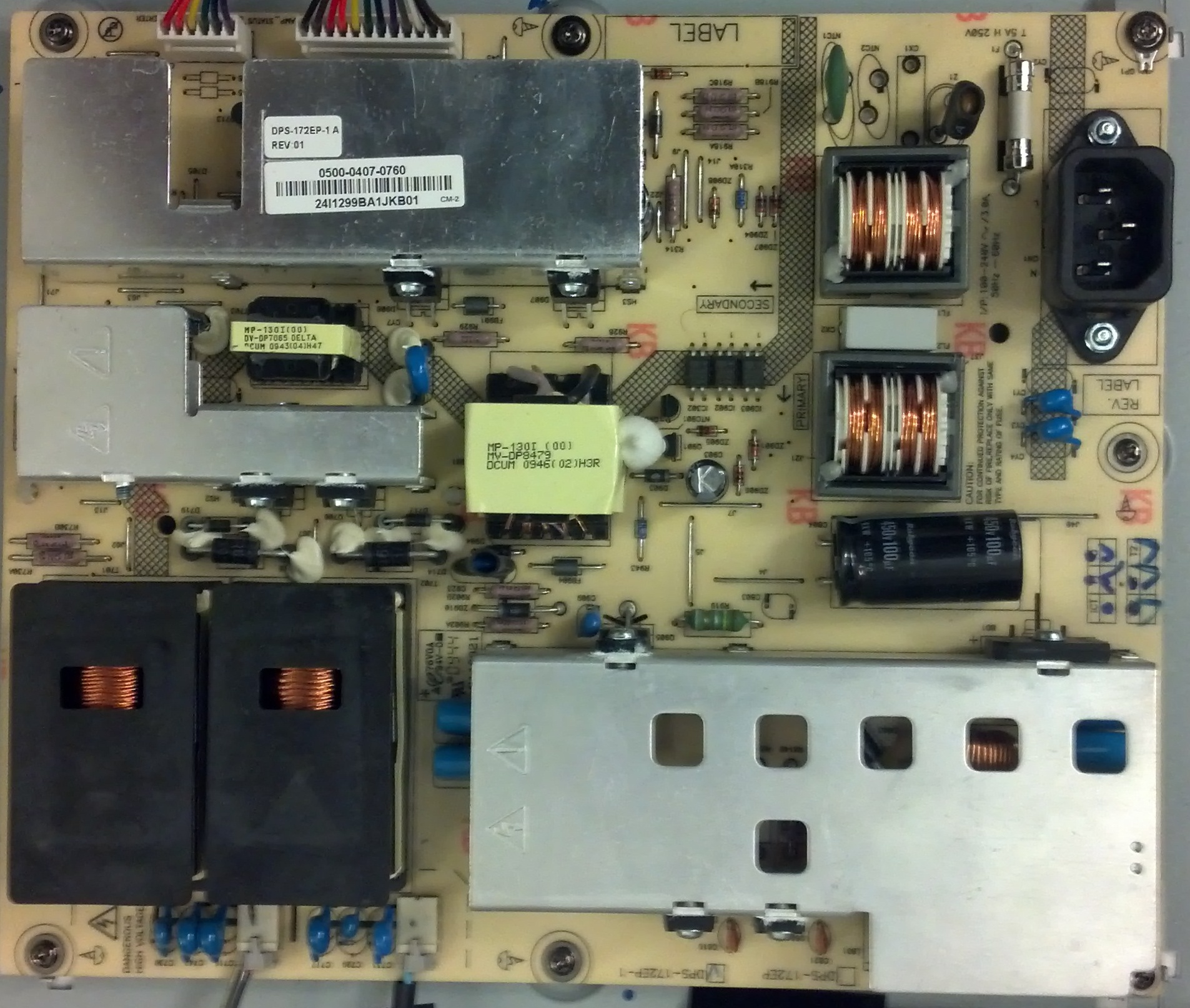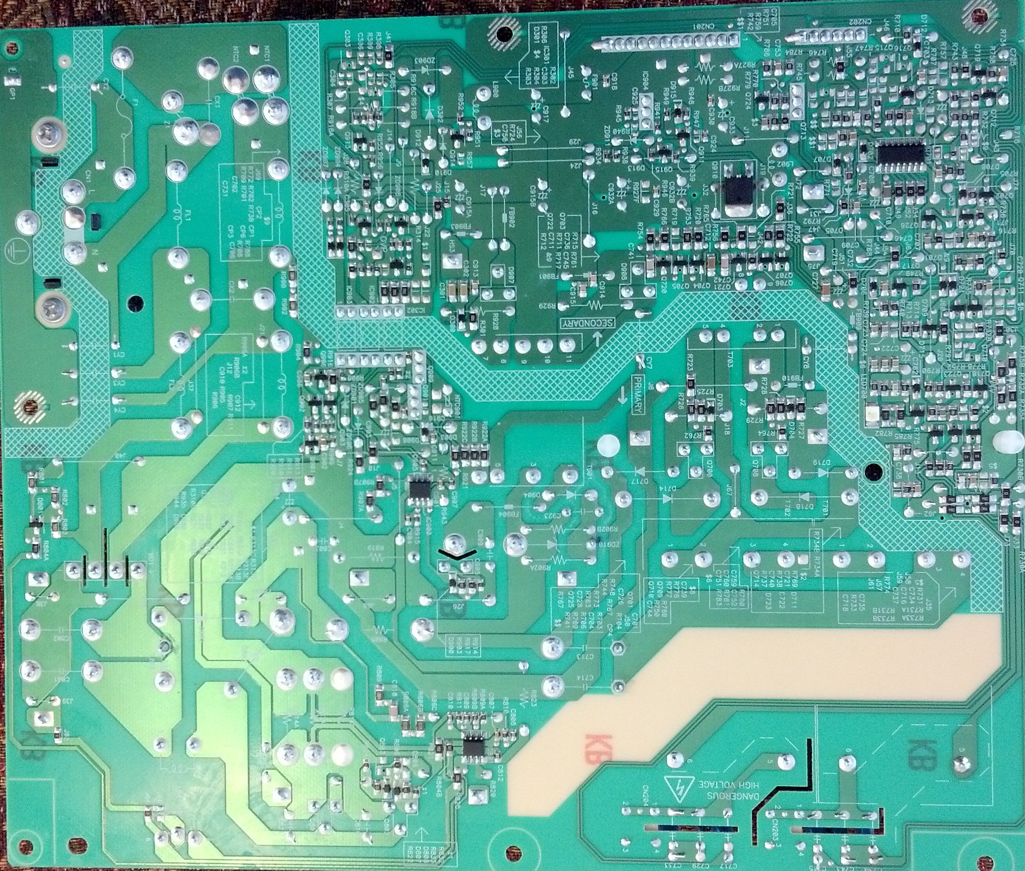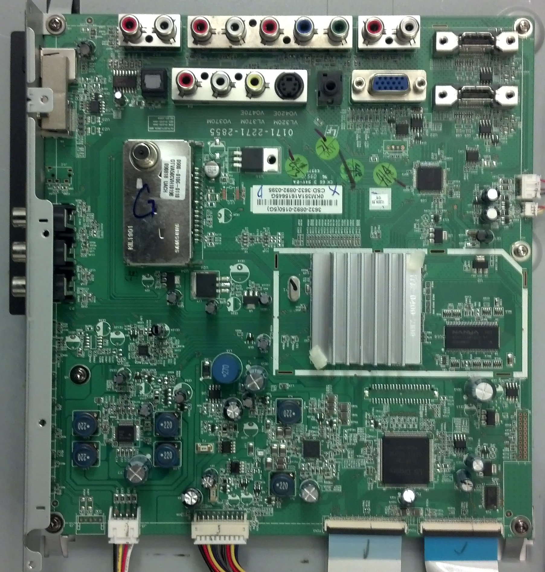 Here are the pics of the mainboard, power board and back side of tv with both boards.