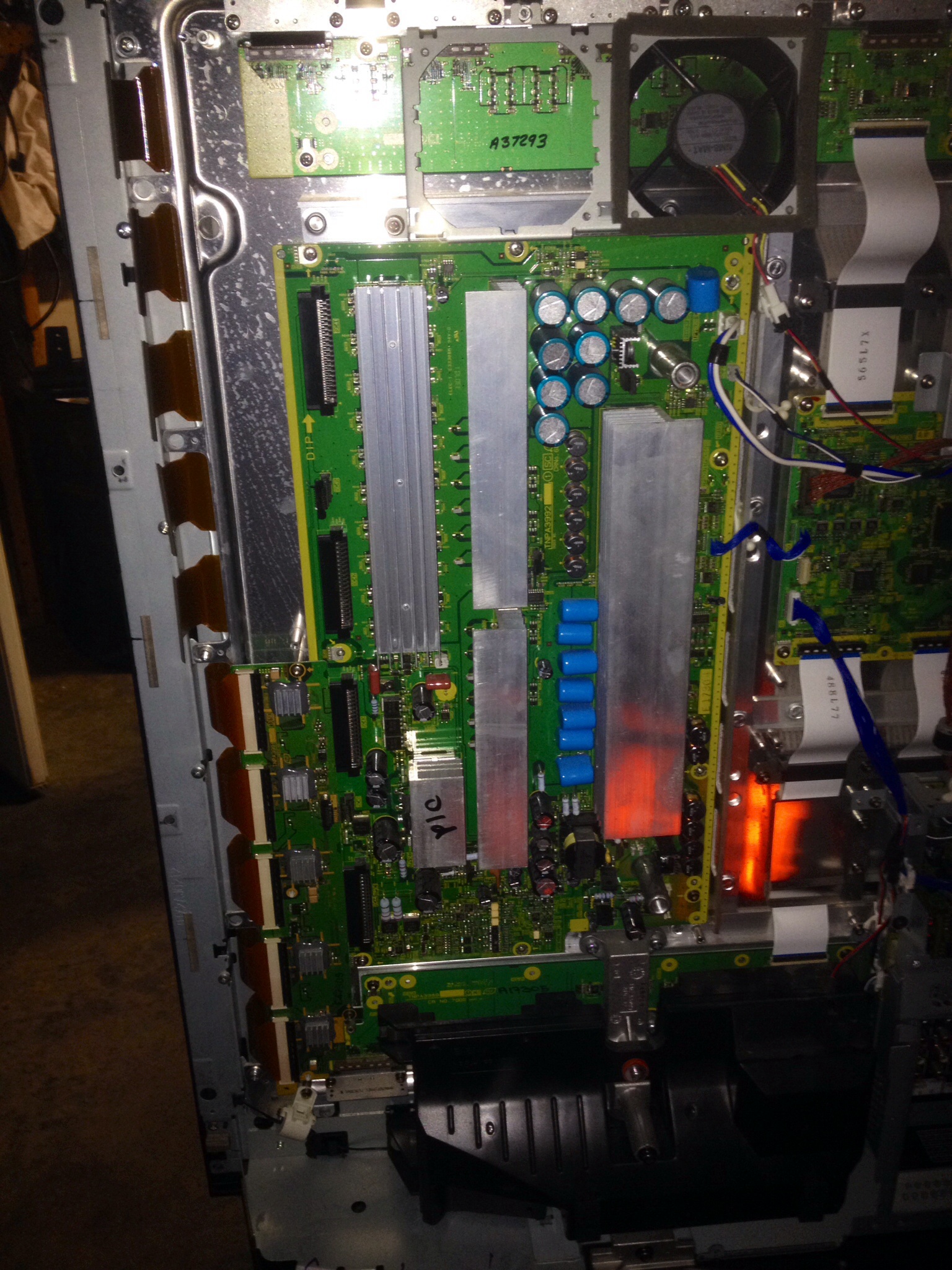 I've got a Panasonic TH-50PZ700U that had the 5 blink error. I replaced the upper buffer board. That didn't change anything so I replaced the Y-sus and and upper buffer board, the screen came up for 2-sec then it shut back down. I removed the upper buffer board, and now the tv comes on with the bottom half of the screen working perfect. So I put the old Y-sus board back In and it works with the lower buffer board, but goes into shut down when I install the upper buffer board. How can I tell if the screen is shorted, and would it short the upper board out?