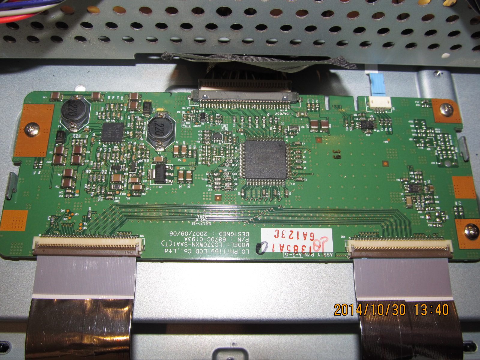 Wondering about your comment re the T-Con board, I decide to disconnect one of the ribbon cables that go from the board to the screen somewhere underneath the cabinet. Here is the results.....