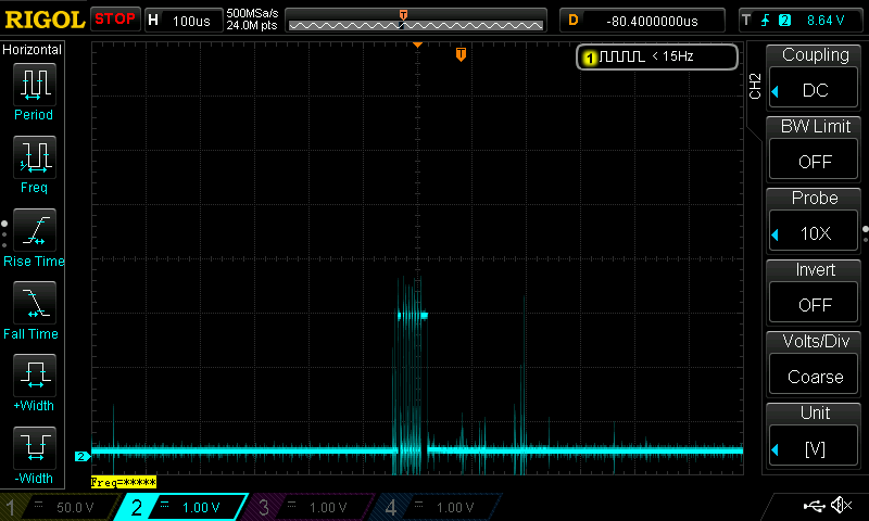 To do this test I had two probes, one on the emitter and the other on the gate. I also checked the input to the driver IC and this was OK...