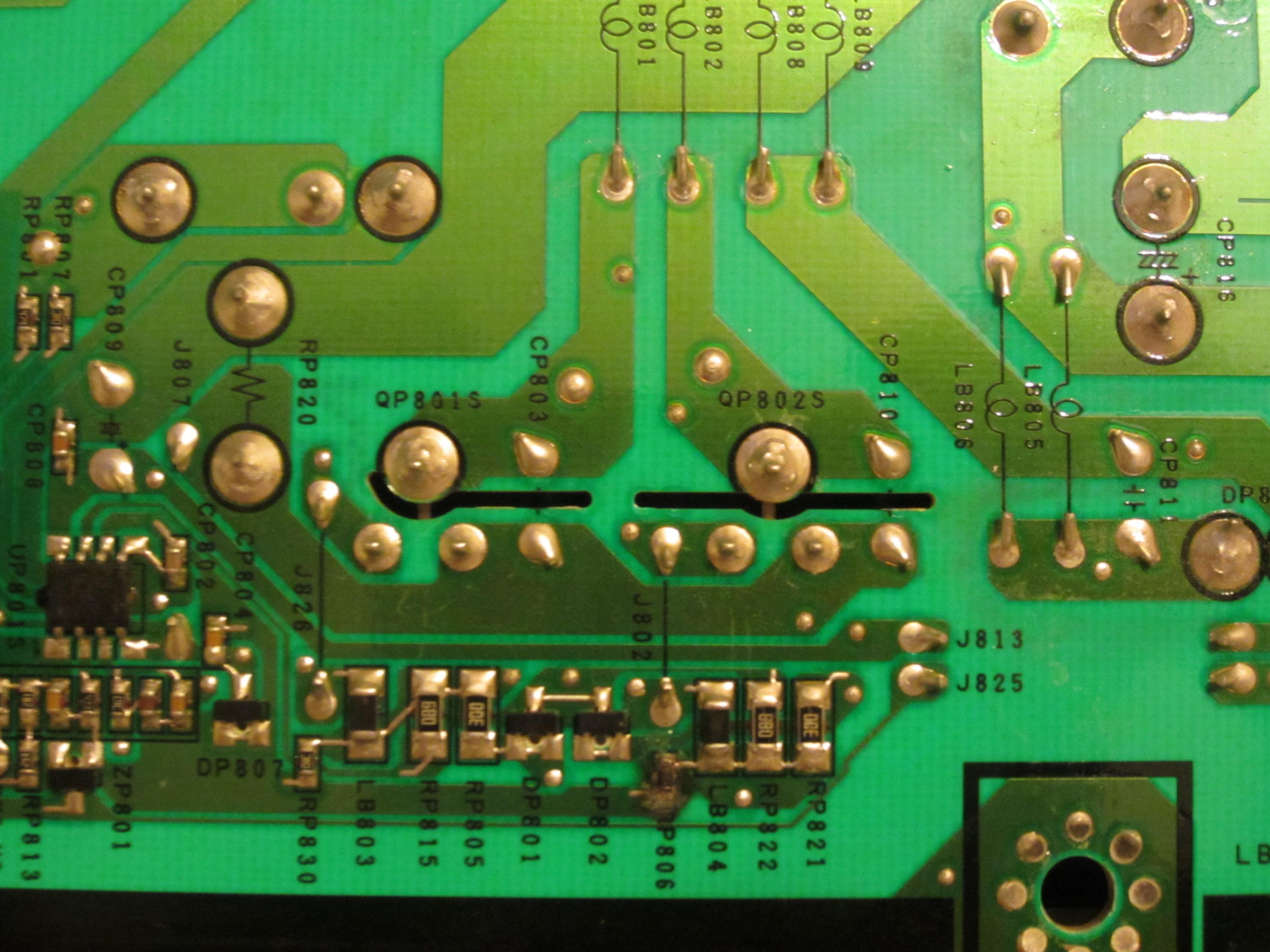 CM806 shows 166V, CM805 shows 0V. All the caps on the right side of the board (closer to CNM802 plug) that I can measure appear to show 0V.