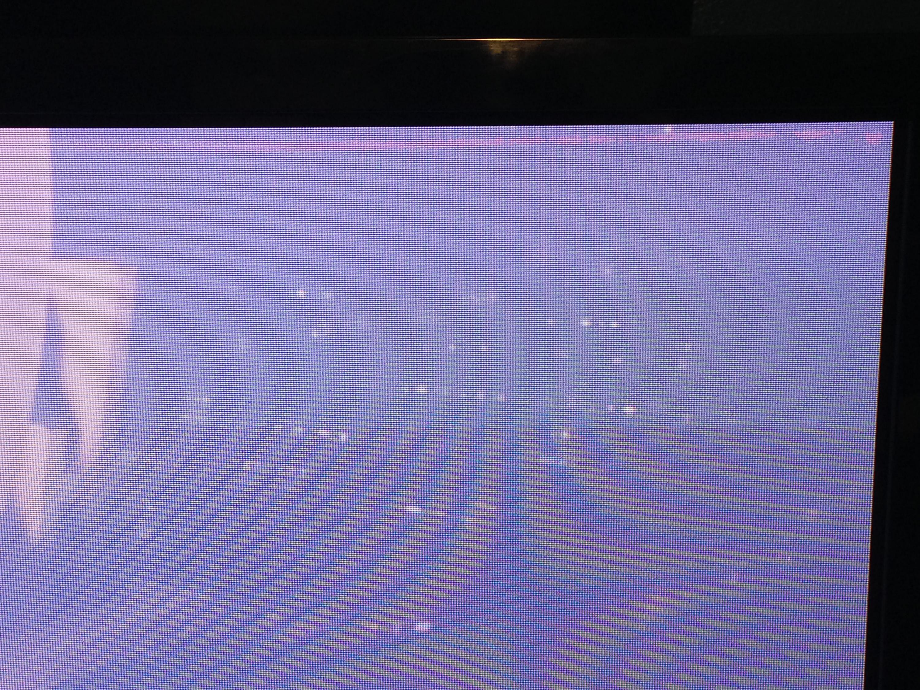 The panel looks fine but I noticed when it transitions to white scenes at the top right corner (Ymain side) there is a very faint but noticeable 2-3 pixel width horizontal rainbow line that only shows up in white near the top of the screen and it only goes about halfway across.