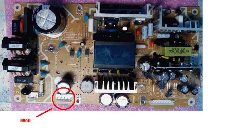 The red circle the output is 8V and on pcb it reads 32-0 32-0