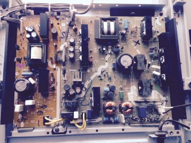Here is the situation, the television was working just fine not too long ago and then one day there was no picture and no sound. When plugged in if you hit the power button I can still hear the relay click sound off of one of the boards. I have opened the back and inspected the capacitors and they look fine no bulges or anything. There are 3 large boards on this unit from what it looks like (dark green on the left, brown in the middle, and camouflage to the right.) The dark green one has a small light that still lights up when plugged in and power switch is turned on.