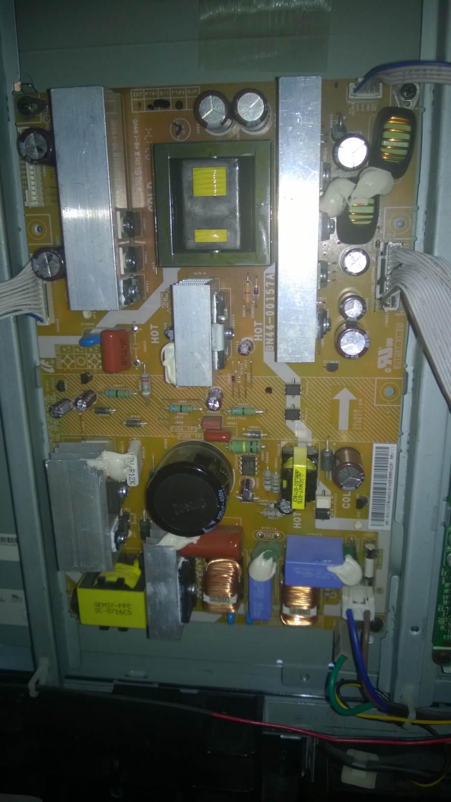 Hi, I'm currently repairing this Samsung 37" LCD, which has flickering artifacts on screen. The PSU had several bad caps, so maybe the faulty PSU has broken something else, but what?