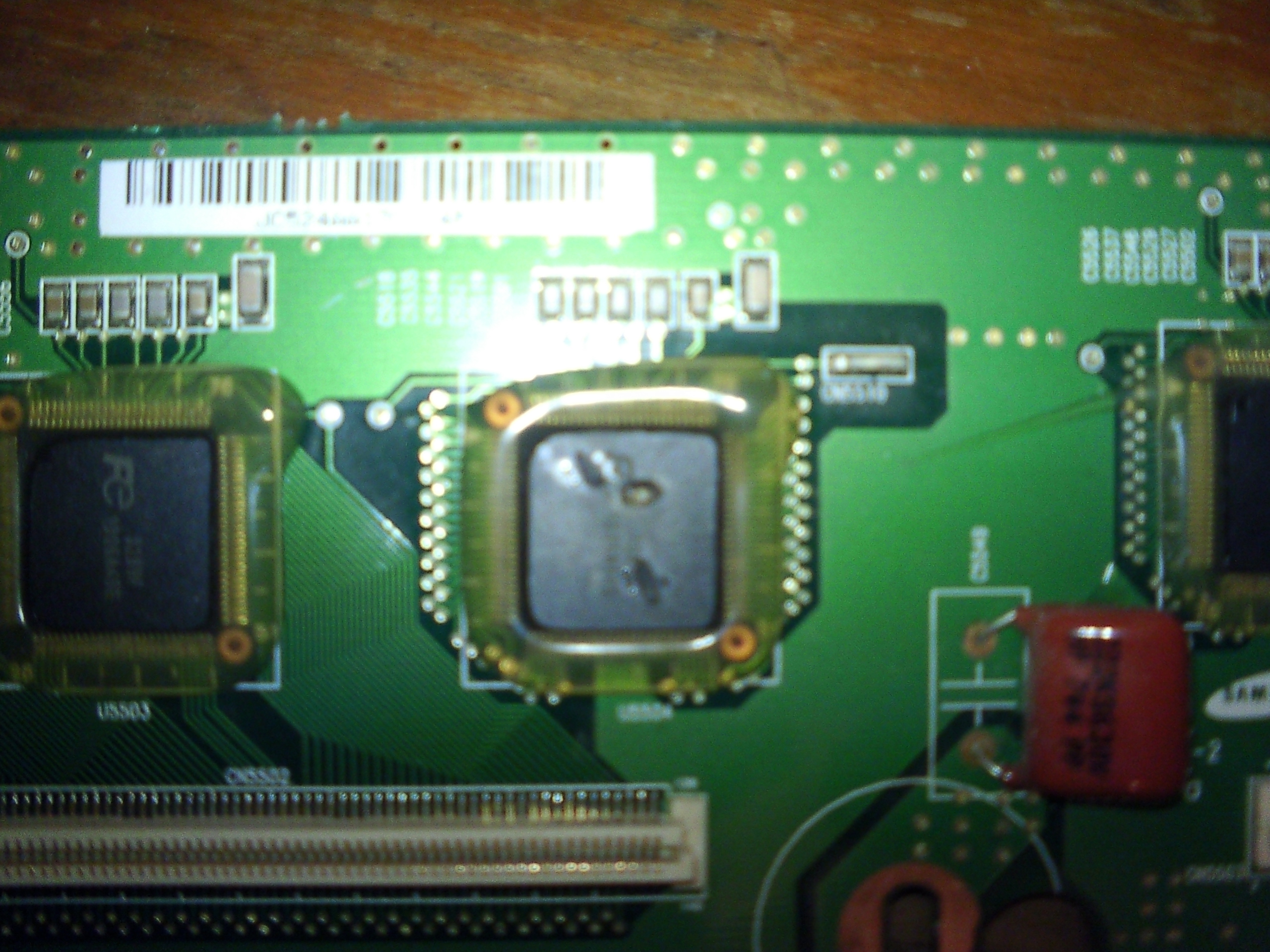 One of the buffer chips went up in smoke. The only thing on the screen was some flashing white dots/flickers along the same "2 Inch wide" track. Rest of the screen is still dead.