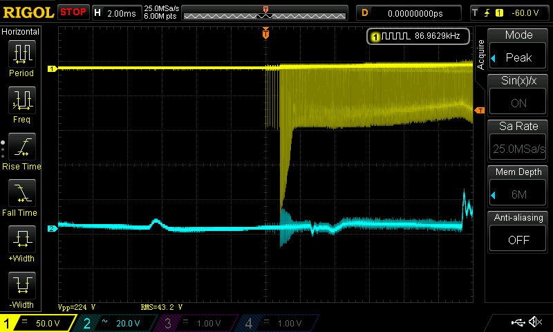 While I am at it, I am not sure why they bothered with the PFC circuit on these power supplies as it does not seem to work properly at all: