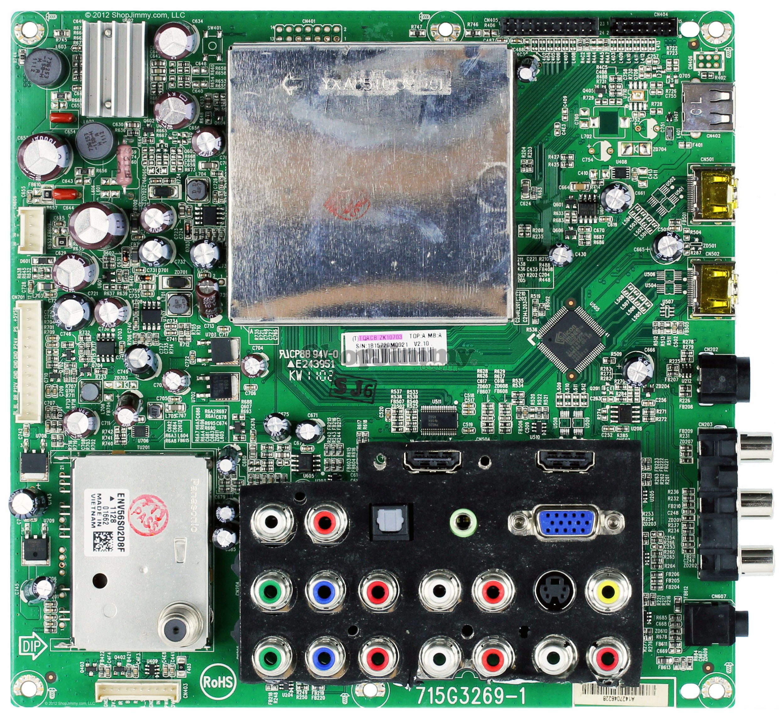 I put the board back on the TV, soldered that voltage regulator that I had to replace with the new one that came in the mail the other day and as soon as I plugged in the TV, the red light came on. We hit the power button, a blue light came on, the back lights kicked on and it said HDMI 2. Screen was blank (black but backlit). I believe we found the problem. I bet that Hitachi that had a similiar board as mine and had almost the exact same problem has the same chip bad, that HDMI switch chip.