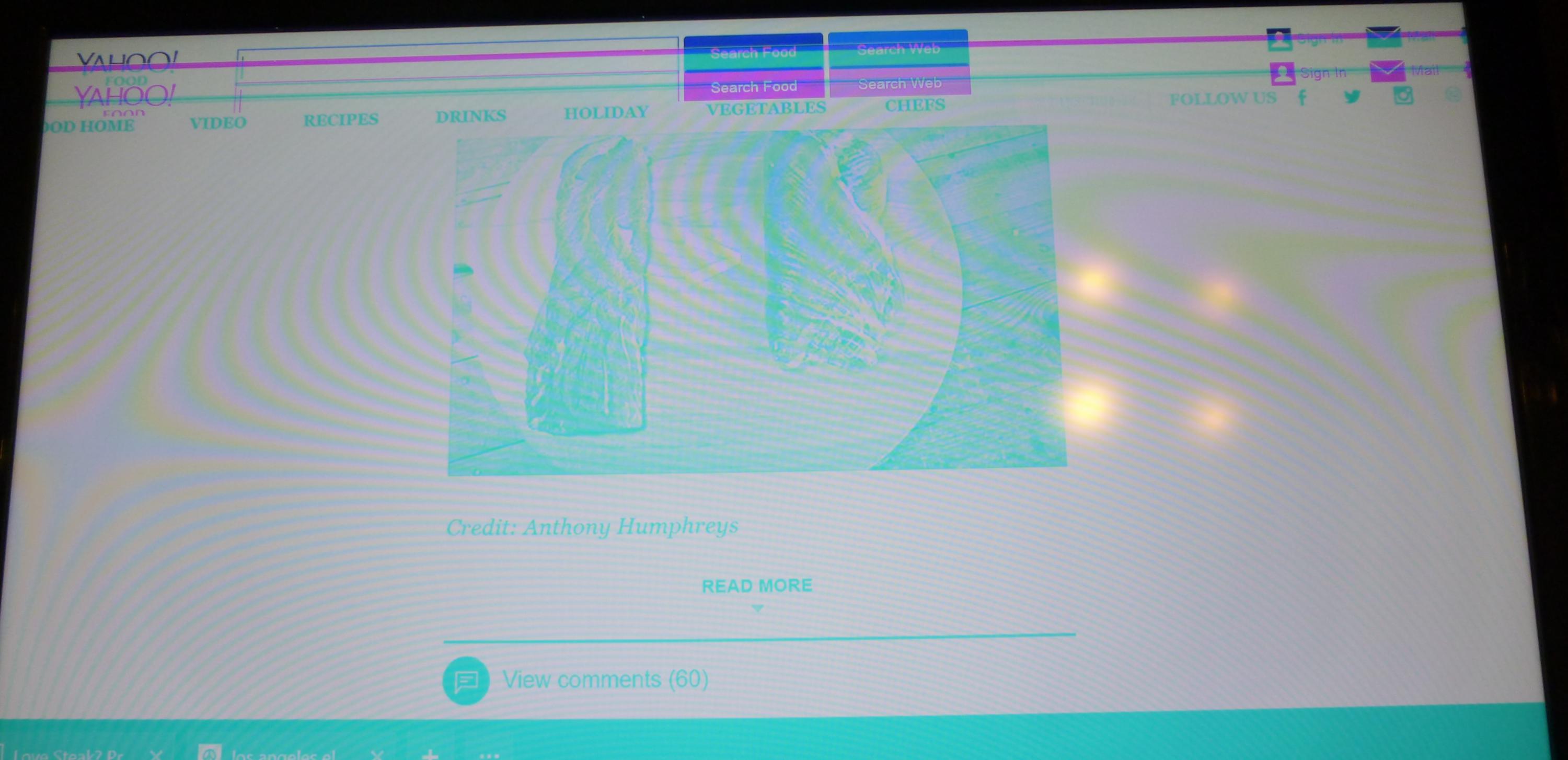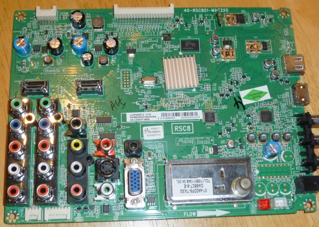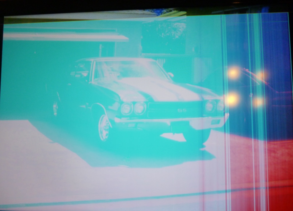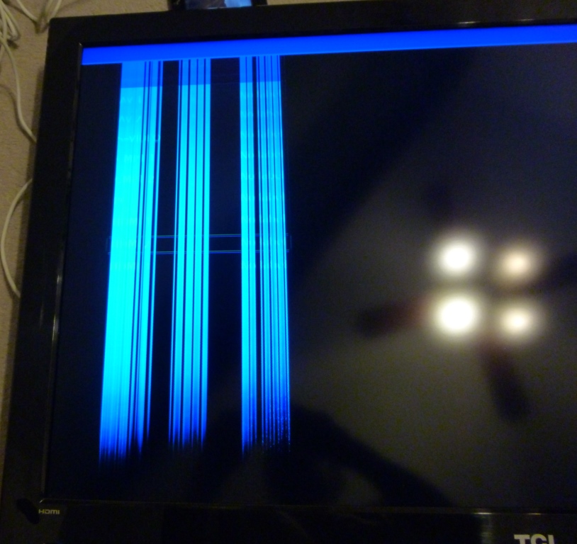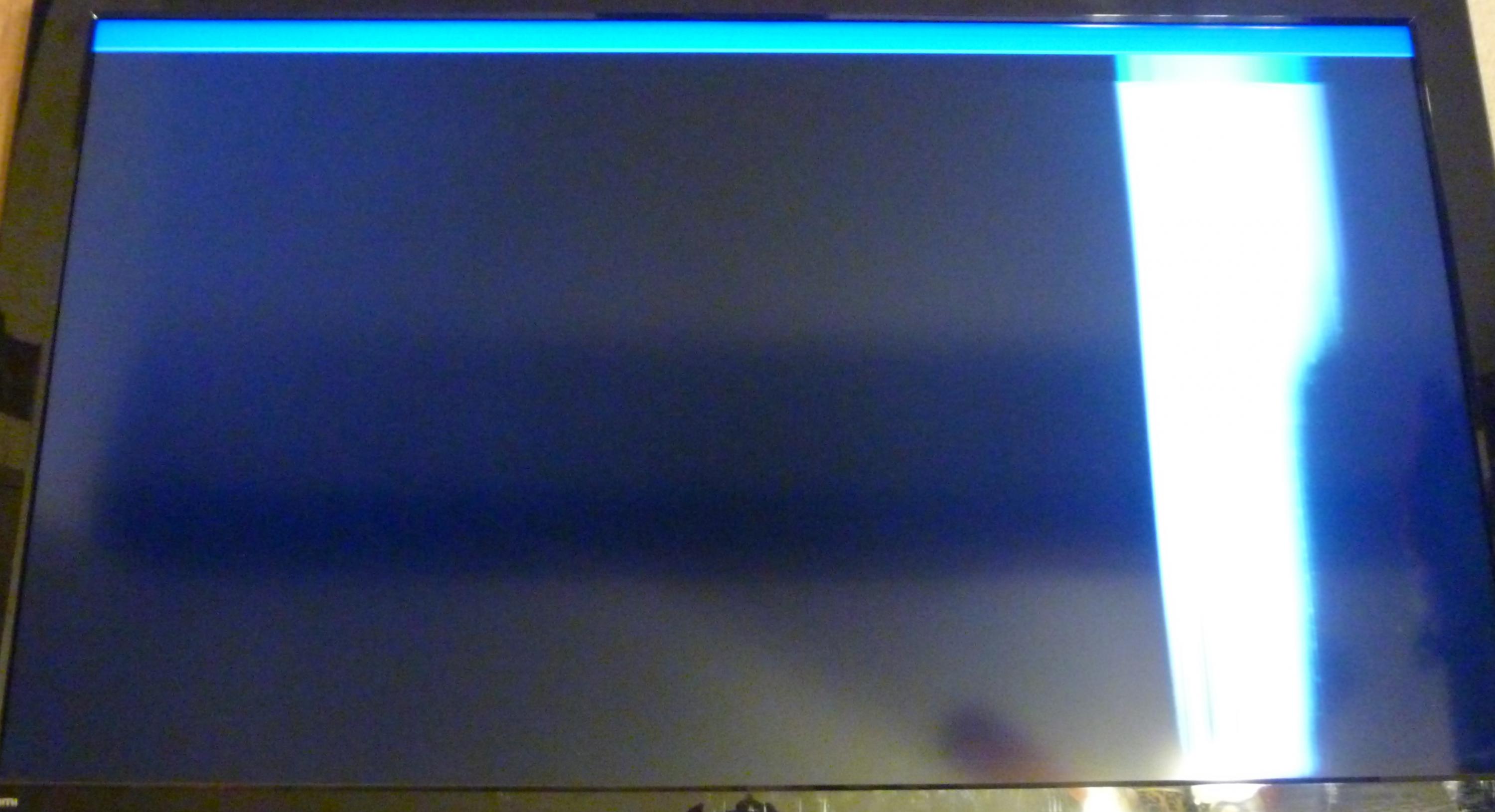 L40FHDM12 has a blue horizontal band on the top and a white vertical bar, wide on the top and narrow on the bottom when there's no signal. Also, the white band drifts on the screen.