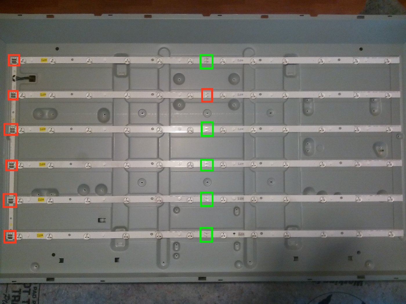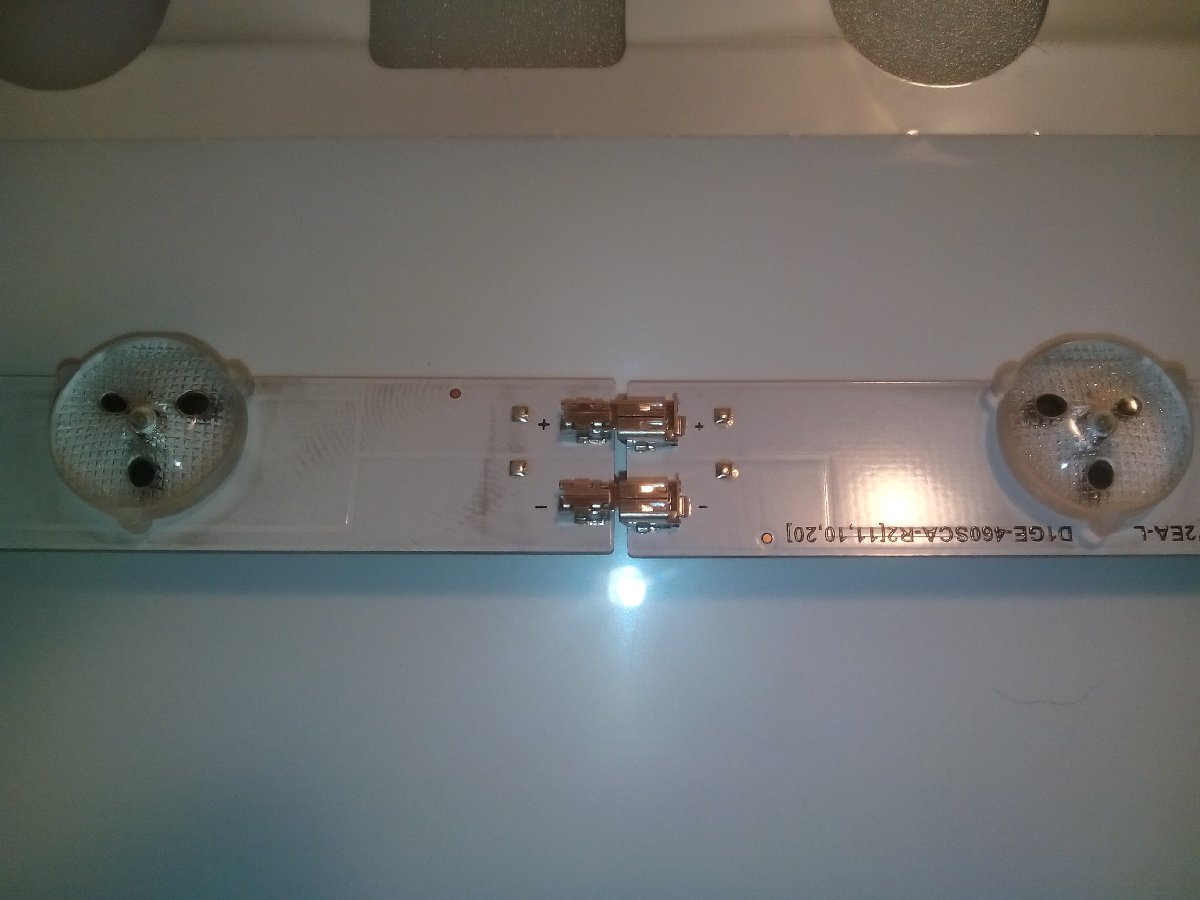Looking at the bottom side of the board, I can see that the connector for the LEDs are setup for driving ONE LED string (only has one boost converter circuit, Q9102, D9102, L9101, C9110) so if one LED is open circuit, then you will not see any LED flash on at all.