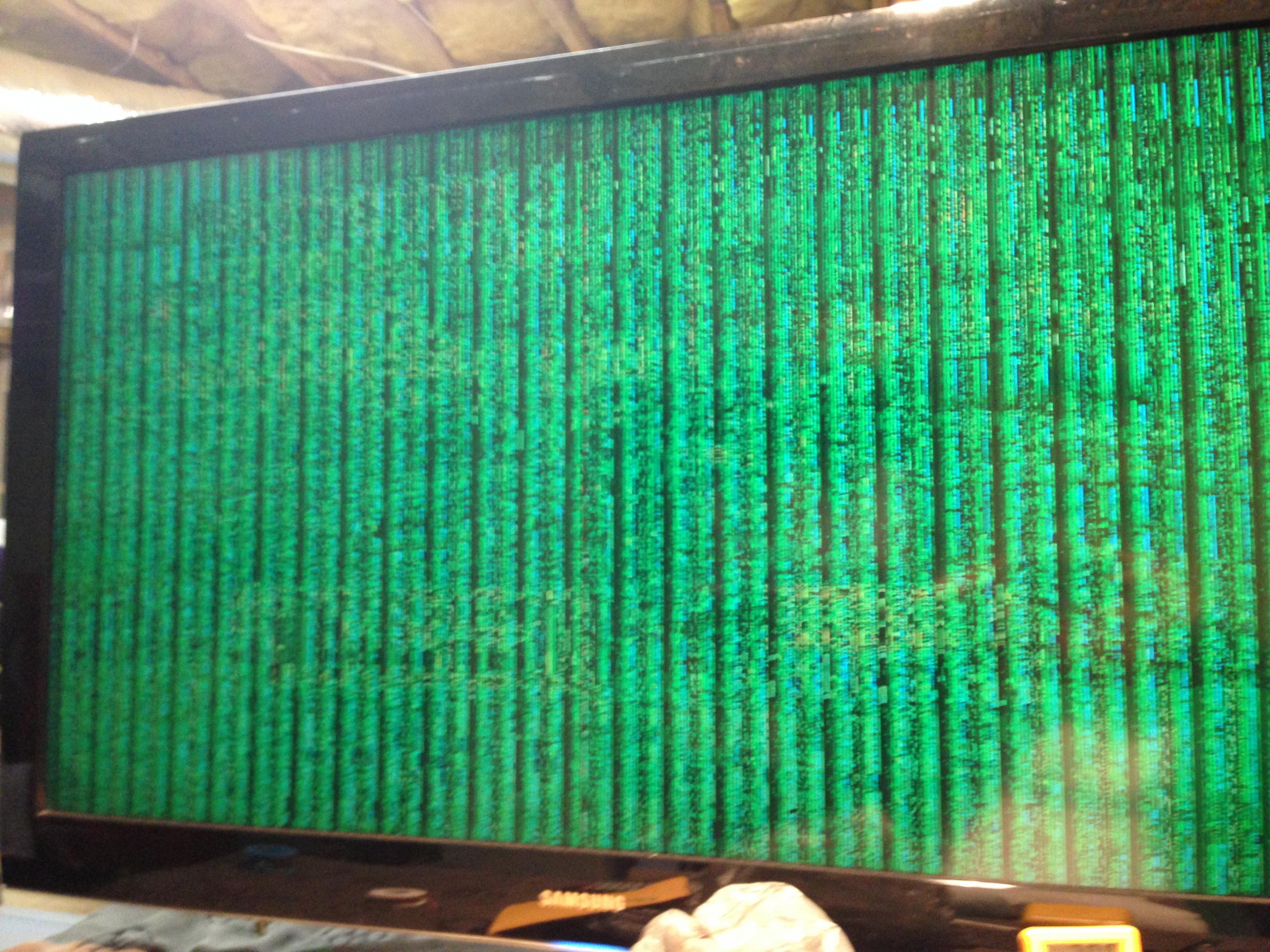 The PS board number is: BN44-00201A. I will attach a photo of the weird raster that has alot of lines with a green screen.