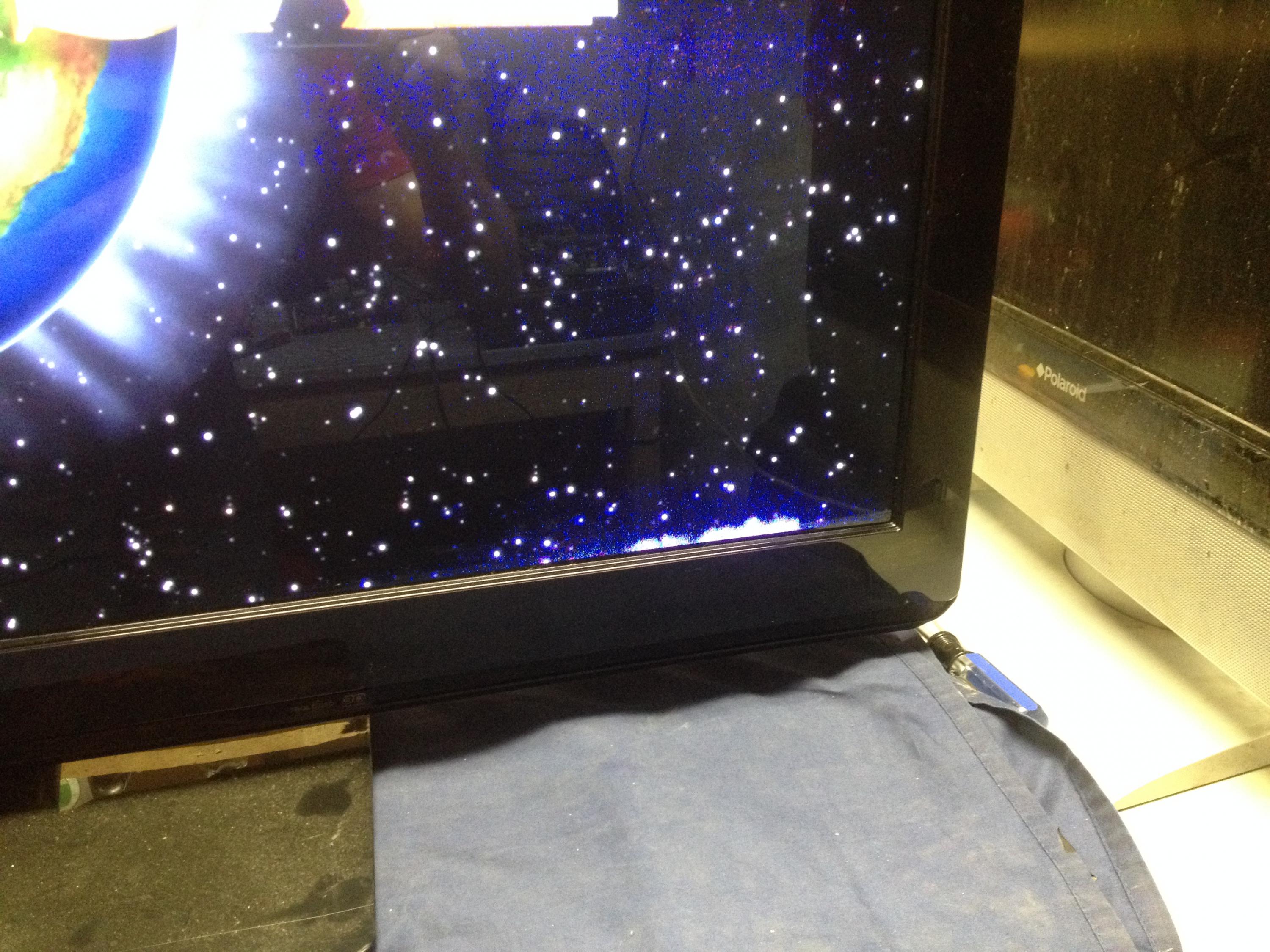 I have the smaller twin here to my personal TV. I'm trying desperately to get it going to give to my in-laws for Christmas next week. The TV had a shorted SC board which I managed to fix last night with a repair kit. Tightened loose screws all over the place when I re-installed the board. Powered it up and was very happy to see the menu pop up. However, upon viewing for a minute I realized that there was a blue haze all over the screen. Especially on dark scenes. It also started out with a spot that was much worse in the lower right corner but that improved after a few minutes. The haze however remained. I'm at work now and cannot troubleshoot but was wondering if anyone had any suggestions. Unfortunately, the repair kit took forever to get to me so if I don't order any additional parts by tomorrow I don't see having this ready to leave town with me next Tuesday. Thanks in advance for any assistance and I always appreciate the input and advice.