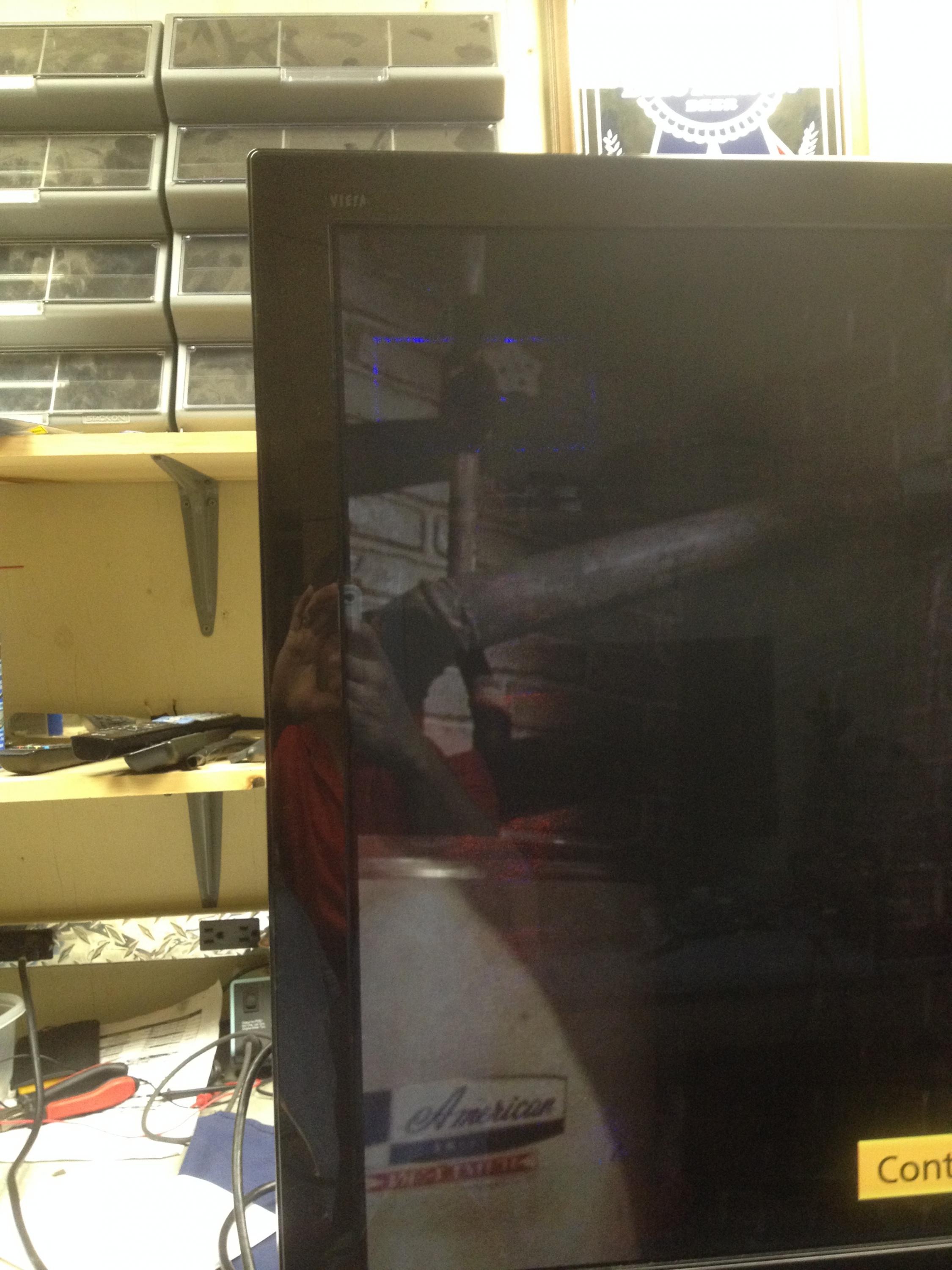 Oh, one more thing. In the last picture, I tried to show what appears to be temporary image retention. Any lettering or sharp edges on a picture that stays up for more than a couple seconds is leaving blue spots on the screen for 5-10 seconds. I'm sure that's related to the entire problem.
