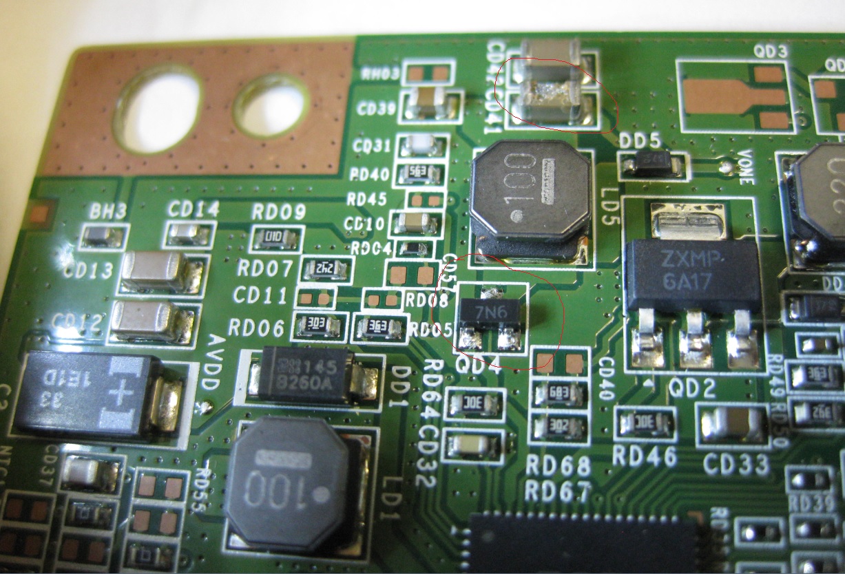 Hisense 46" TV F46K20E, has backlight but no picture, found the 3A fuse on the t-con board was open. replace a good fuse but burnt again. Check T-Con Board: A60EDGEC2LV0.2, one transistor (DQ4) was shorted, part number only printed as 7N6, what is this transistor, are there any general equivalence ?