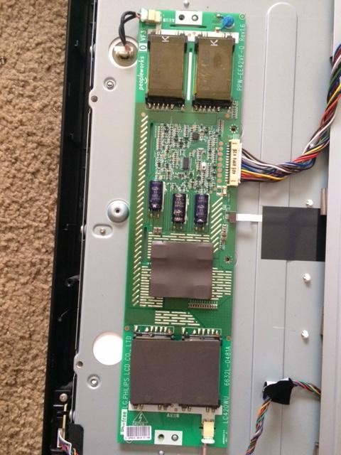 Then I hooked up a source to HDMI #1 & #2, #3, &#4, and turned it on. It worked, with no flickering or going to black. So I watched it Saturday, with the back off. Sunday morning before football, I put the cover back over the Inverter, and the Back on the TV and watched for 1/2 a day. Then moved the 32" TV OFF to bedroom, and replaced the 42" back in its original spot. Seems to work great.