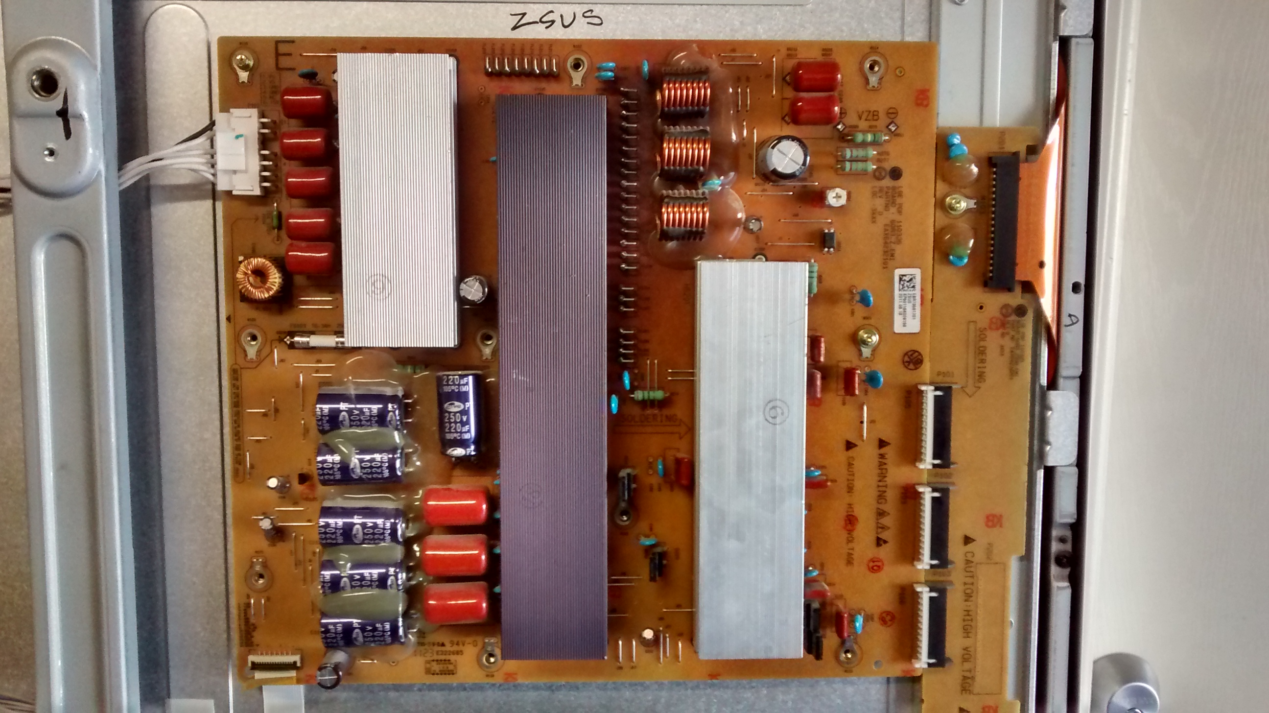 Background on the set: Picked this set up from someone who was going to throw it away because it stopped working. Took it apart and checked PS for proper voltage and it checks out ok. It had no picture but had sound. After reading a few threads on here I reflowed the inductors on both Y and Z boards and now I have picture ONLY when the Z board is disconnected. The picture looks dim and somewhat fuzzy and has black blotches on the screen that slowly fade as the screen warms up. If I plug in the Z board then the tv will try to power on but shut down. I also hear a electrical buzzing sound from the Z board when it tries to power up.
