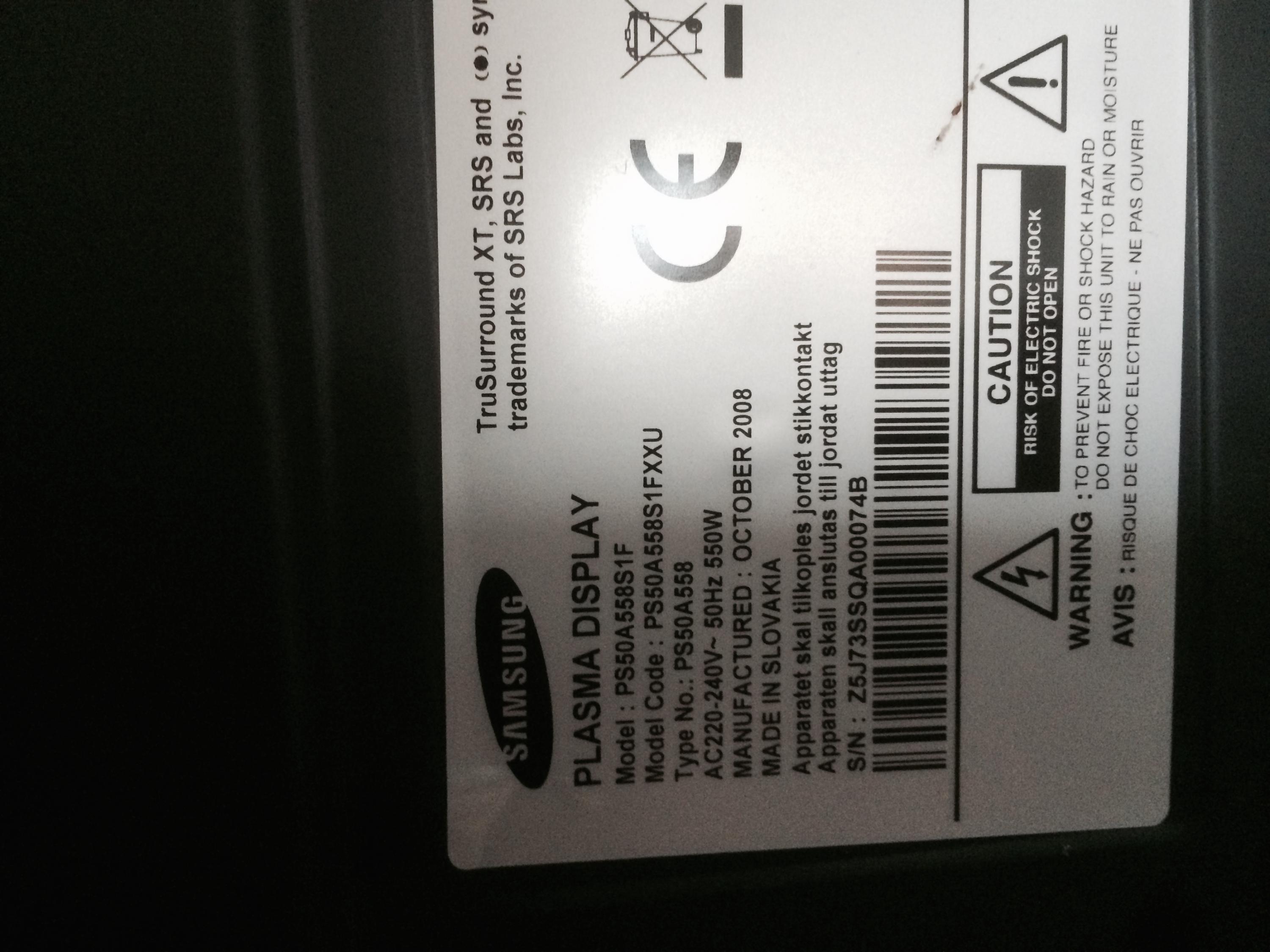 Re: samsung PS50A558S1F 50" plasma clicking and no picture