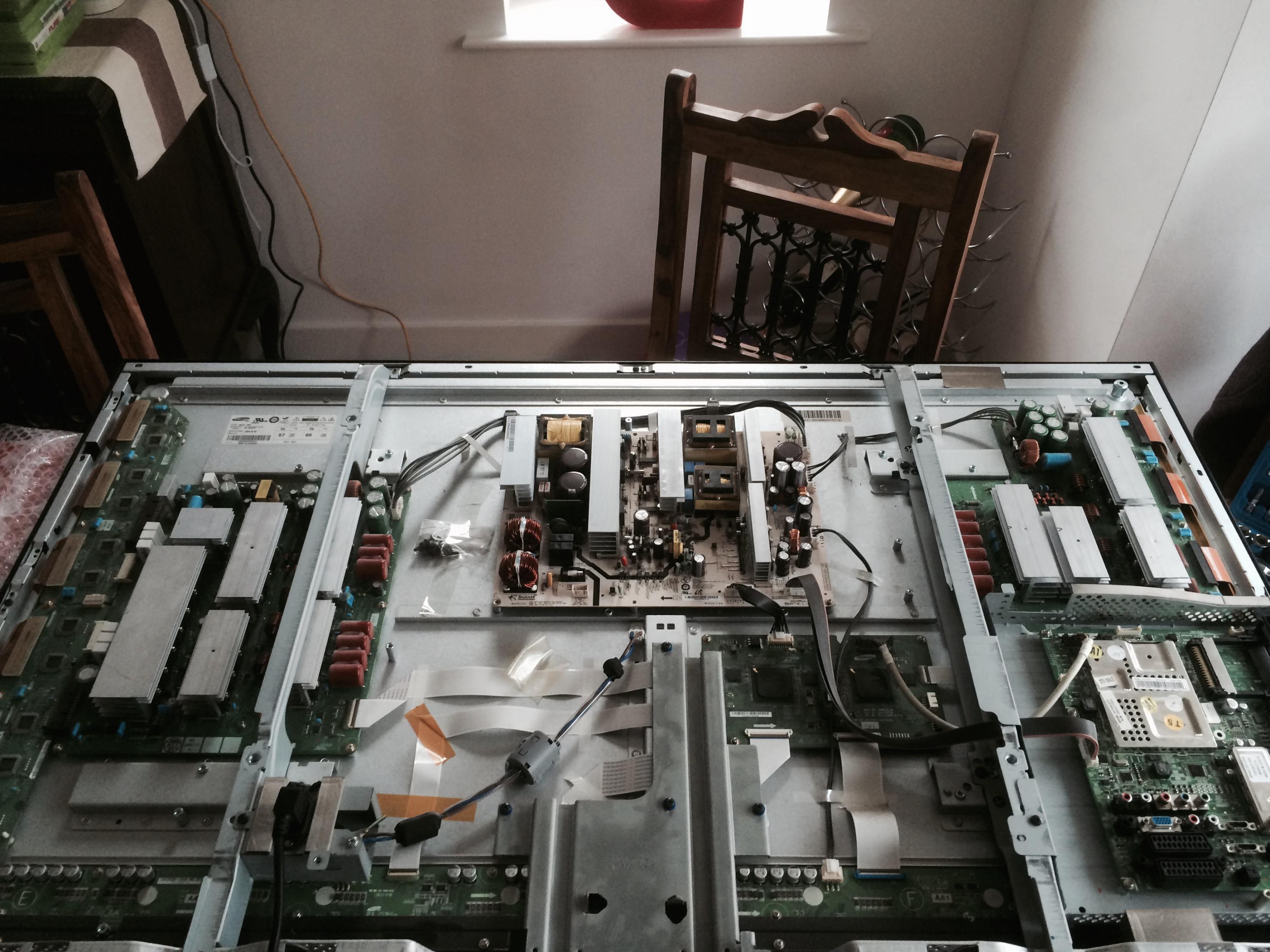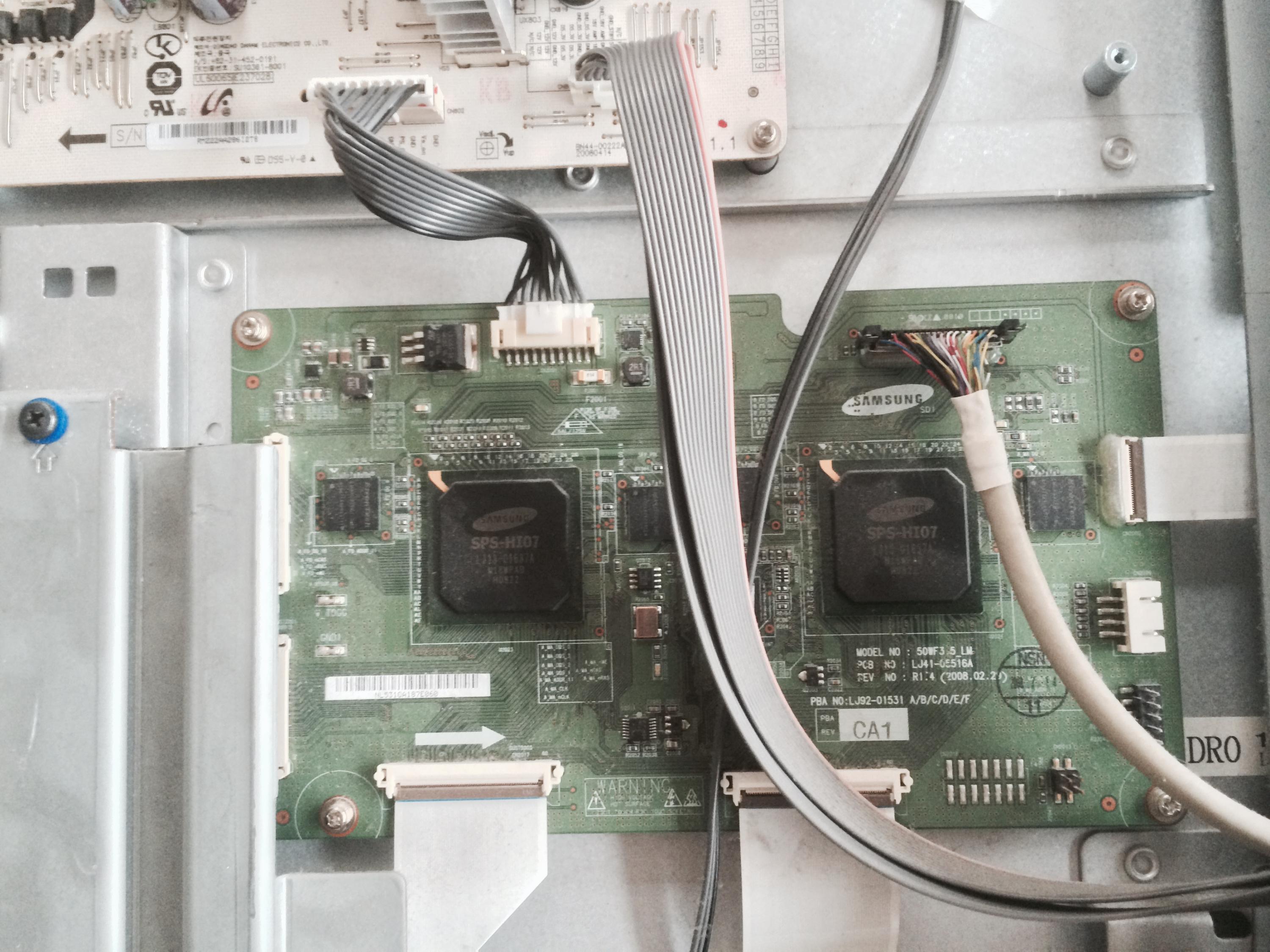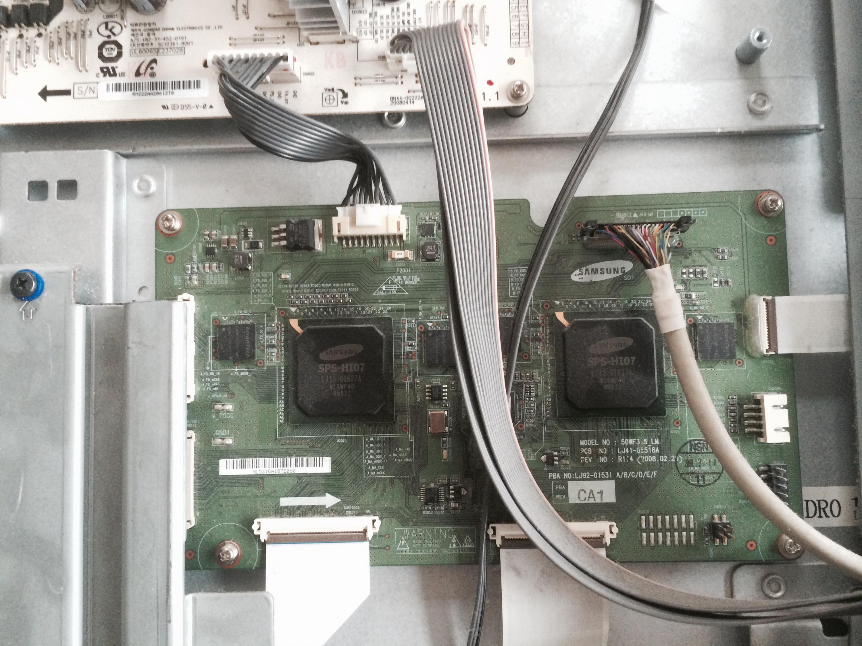 This is my first post, but long term lurker on the form learning as much as possible about these TV's. I was given this TV as due to a power outage of constant On/off of power to TV. The TV originally would just click on and off (Typical Reboot Cycle). I opened the back of the TV, and troubleshooted by taking the 96 pin LVDS off one at a time to see if I had a picture on either side. I finally fixed the reboot cycle by finding the error on the left side of the screen off connector CN 1301, and the TV would stay on. Further troubleshooting led me to the driver boards where...