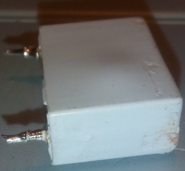 For this I have something special. I took an clip lead, cut it in half and soldered it to a 5W 100 Ohm ceramic wire wound resistor. Put that on the caps, wait a few seconds and there shall be no more