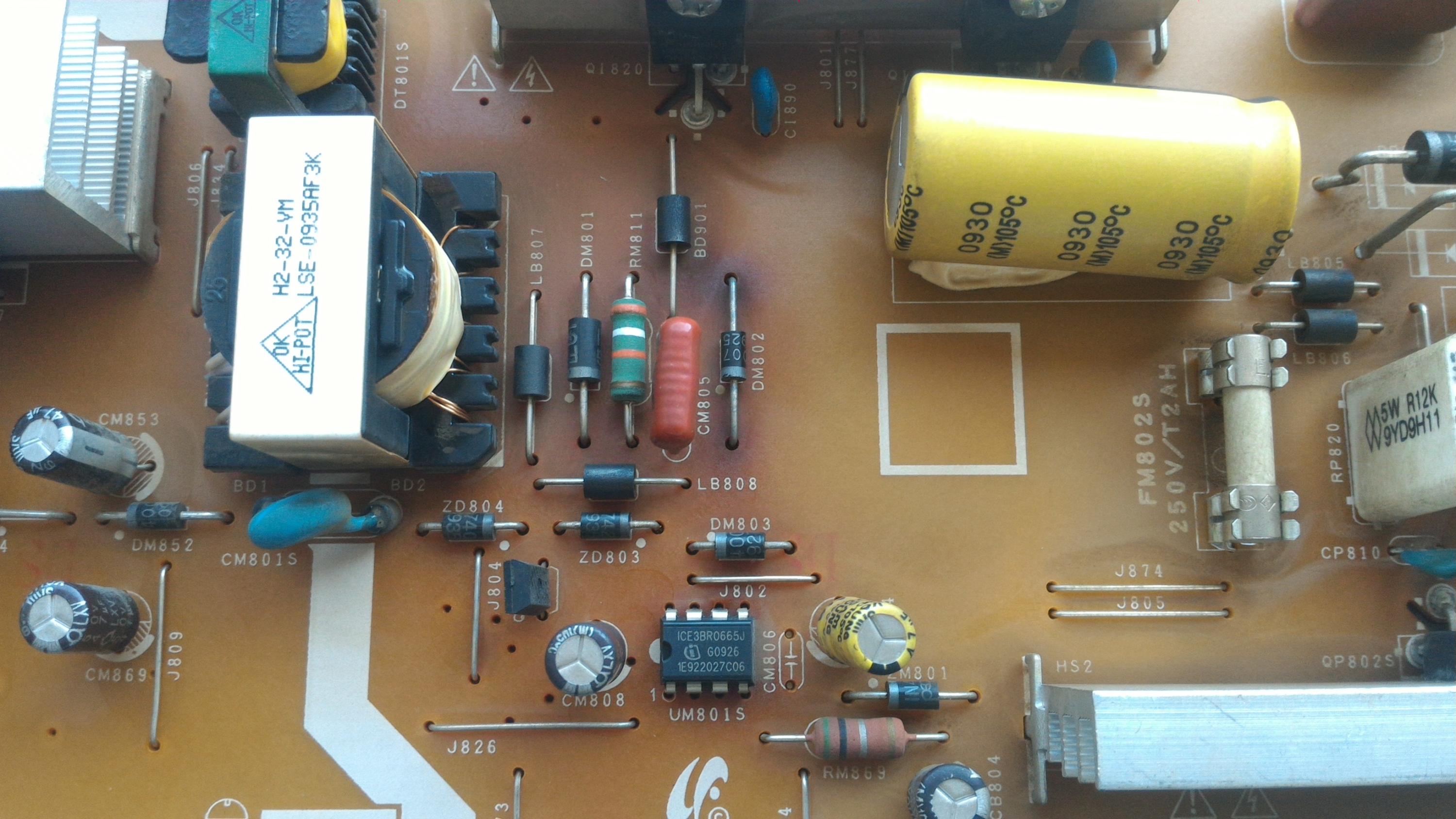 "I pulled RP823, the zero ohm link that feeds the PFC chip ( I saw you mentioned RM869 but that is the current sense resistor for the switch mode,)" Sorry for the typo.