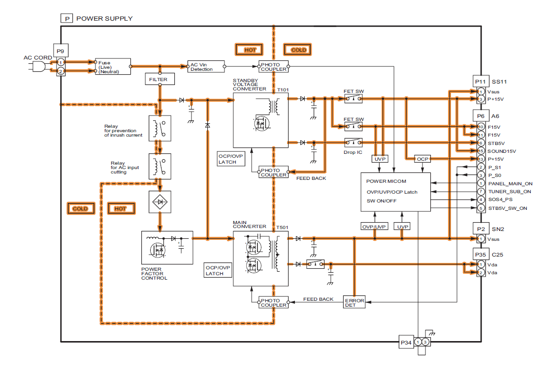 No, I think it is pointing back to SN board. If you have a meter that can measure 220v, at the PSu do this again and back probe at the PSu either P2 or P11 and verify vsus voltage is present. If so then P and A are ok.