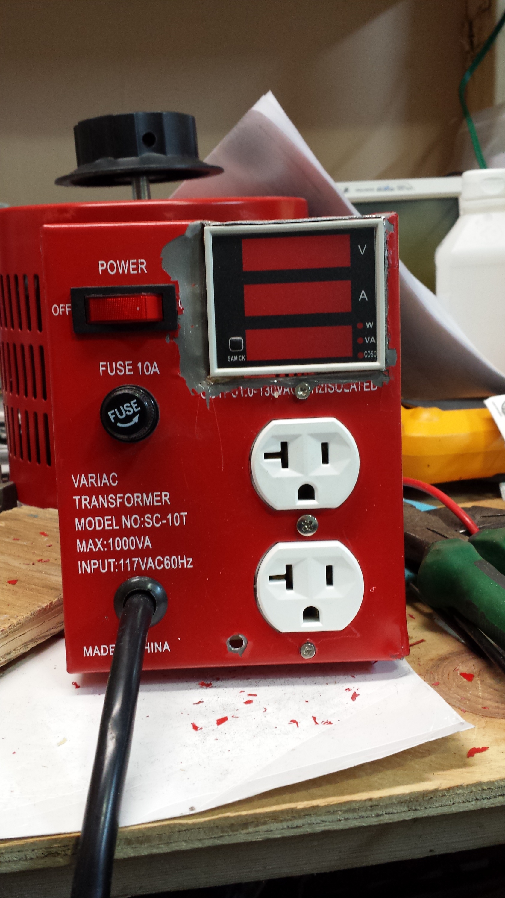 Well, it's on hold until the new switch and stuff gets here. I appreciate all the help. I couldn't have done this wondering now if the magnetic field from the variac is going to affect the ammeter, since it uses an inductive coil. Well, I'll find out when it's done. It's not incredibly important, the voltmeter is what I'll use the most anyway. I wonder if it uses the value of the ammeter for the wattage calculations too?
