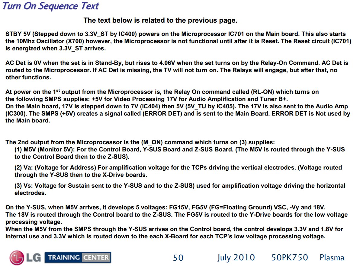 8) I'm not a plasma expert at all, but all SMPS and main board interaction work more or less the same for any consumer electronic device.Attached Filesif you find these attachements useful please consider making a small donation to the site
