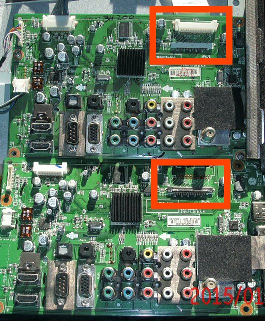 The lower board is the old one. It has the tab style connector that goes to the Video...