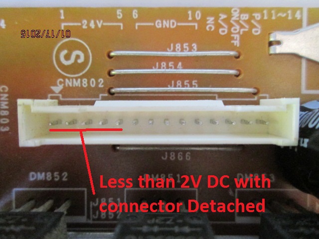 On the other side of the board I unplugged the connector to the Inverter Board (Terminal CNM 802)... and checked voltages.