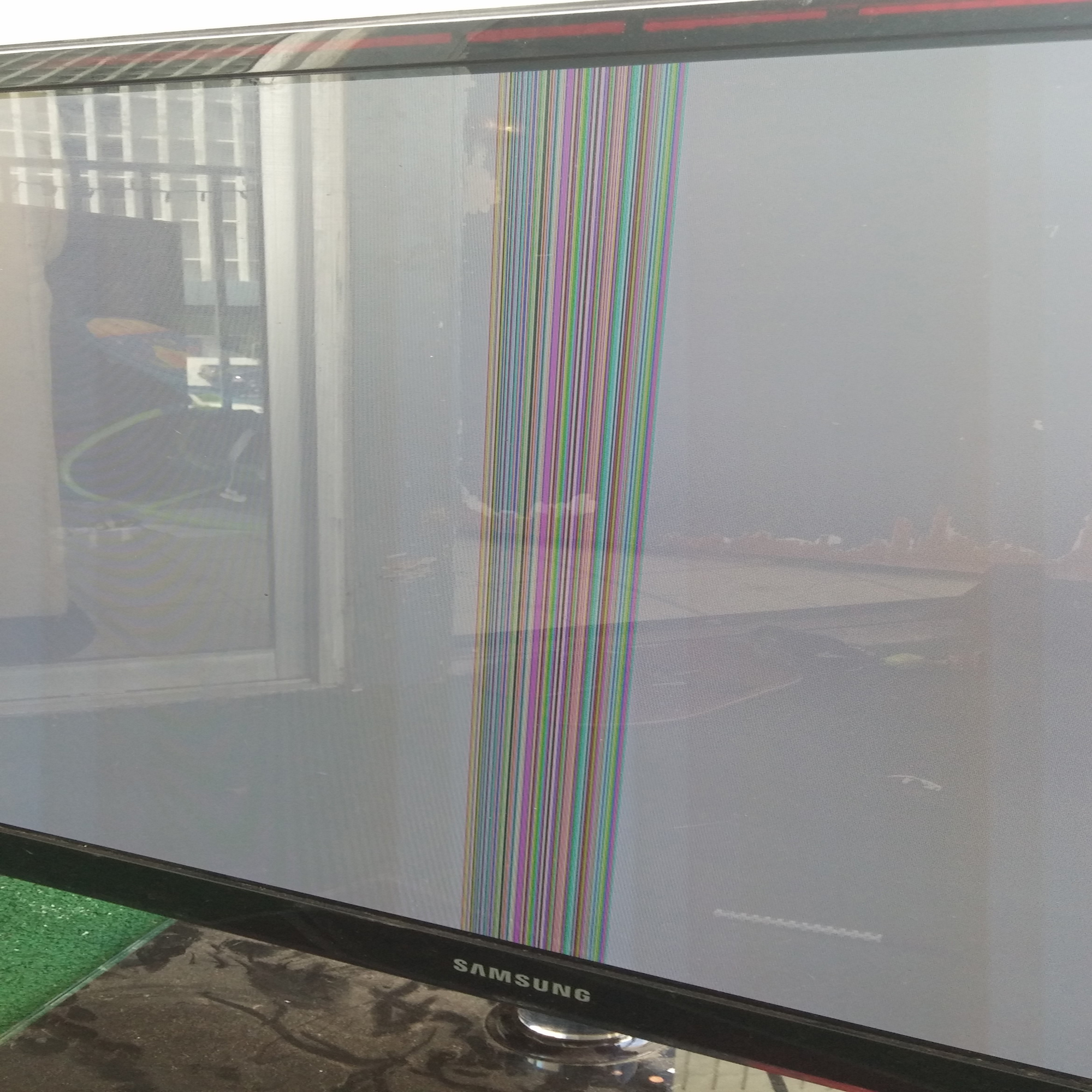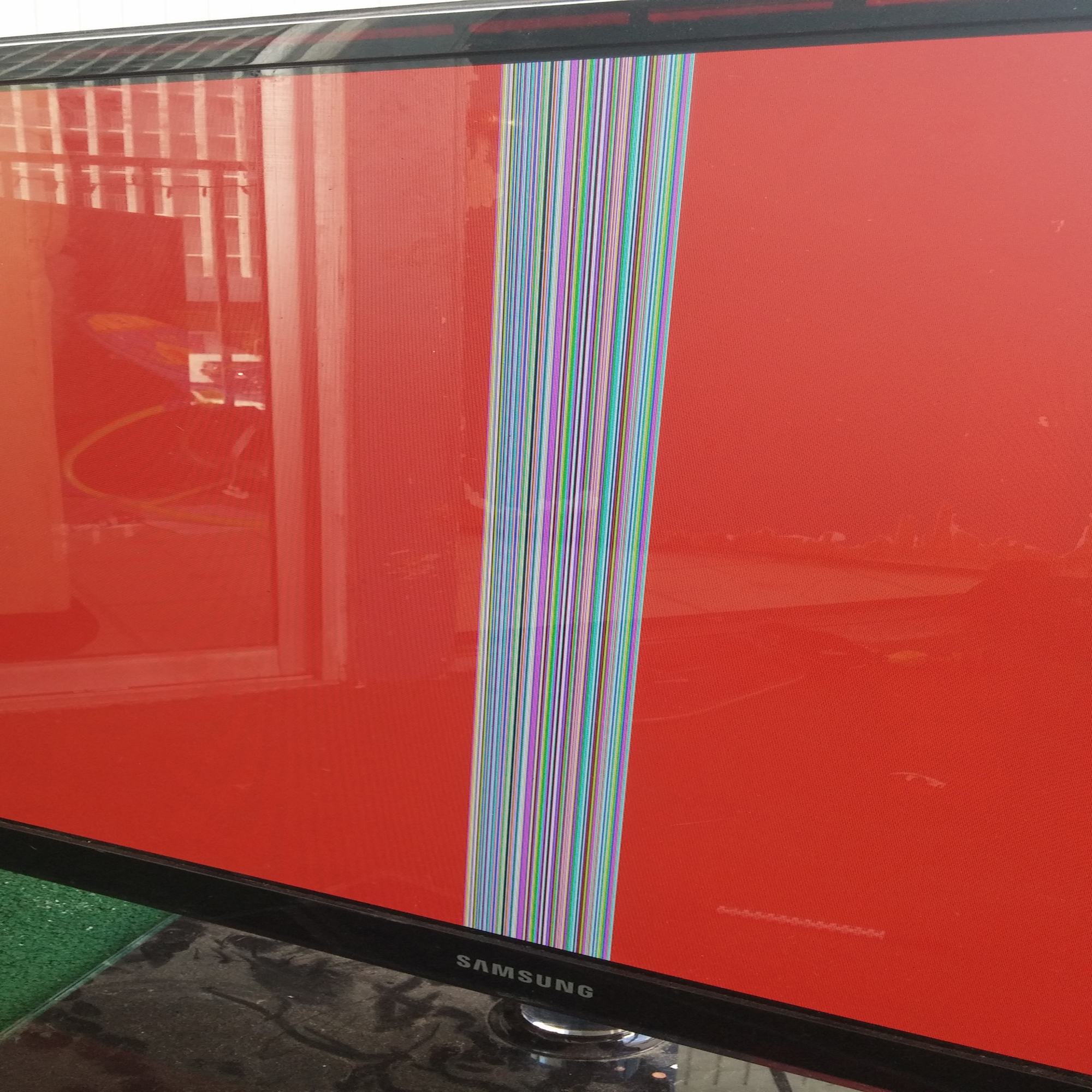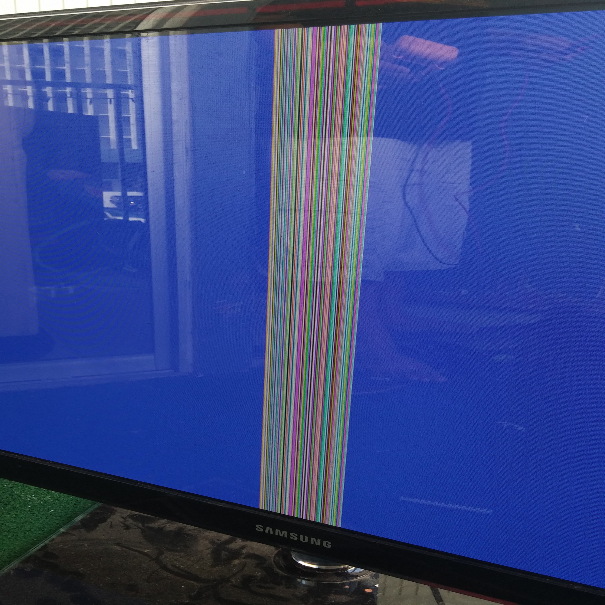 I have a Samsung PN51D550C1F that has colorful vertical line in the middle and a faint line on the right of that. Pictures show in test mode. Any help would be greatly appreciated.