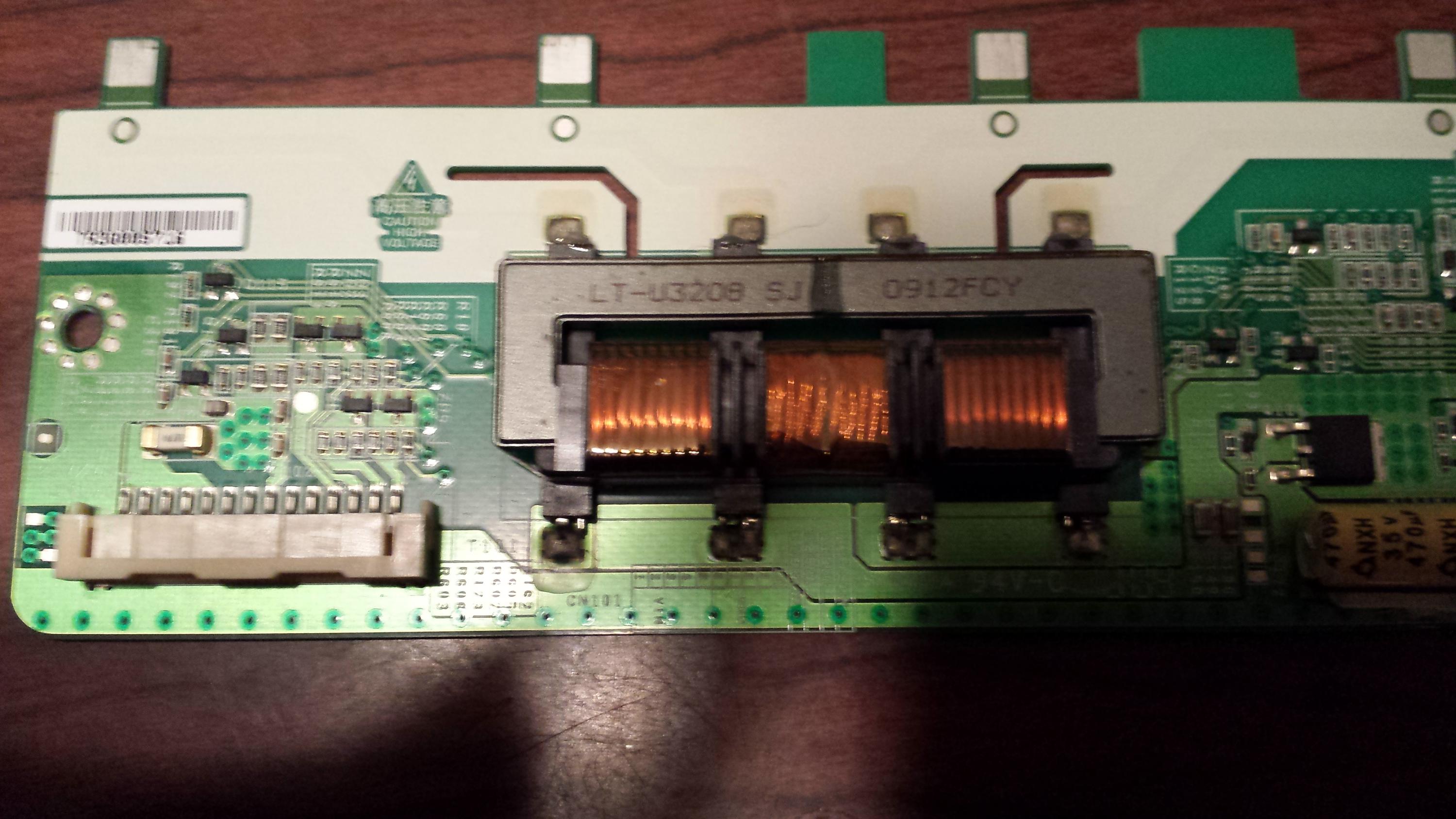 The power supply chirps around the transformer when the inverter is plugged in and i get no power at all on the secondary side except a small amount of pulsing voltage that coincides with the chirping but with the inverter disconnected i get all the proper voltages on the secondary side and the tv powers on and off like it should. So i am thinking the power supply isn't driving the transformer properly when it has a load or a short but i checked the caps,diodes,resistors, etc. and i can't seem to find a faulty part or parts that is causing it to shut down when trying to power the inverter. i don't get a flash of backlights and i did check the inverter board also and the fuse is ok and everything checks ok too. so i am sure it is something on the psu but am having a hard time finding it. thanks in advance for any help.